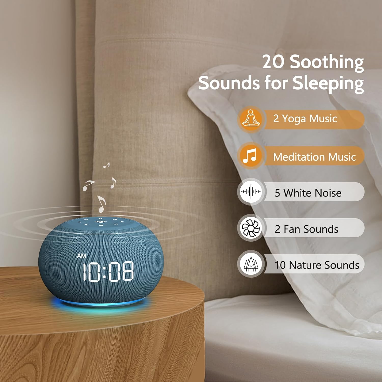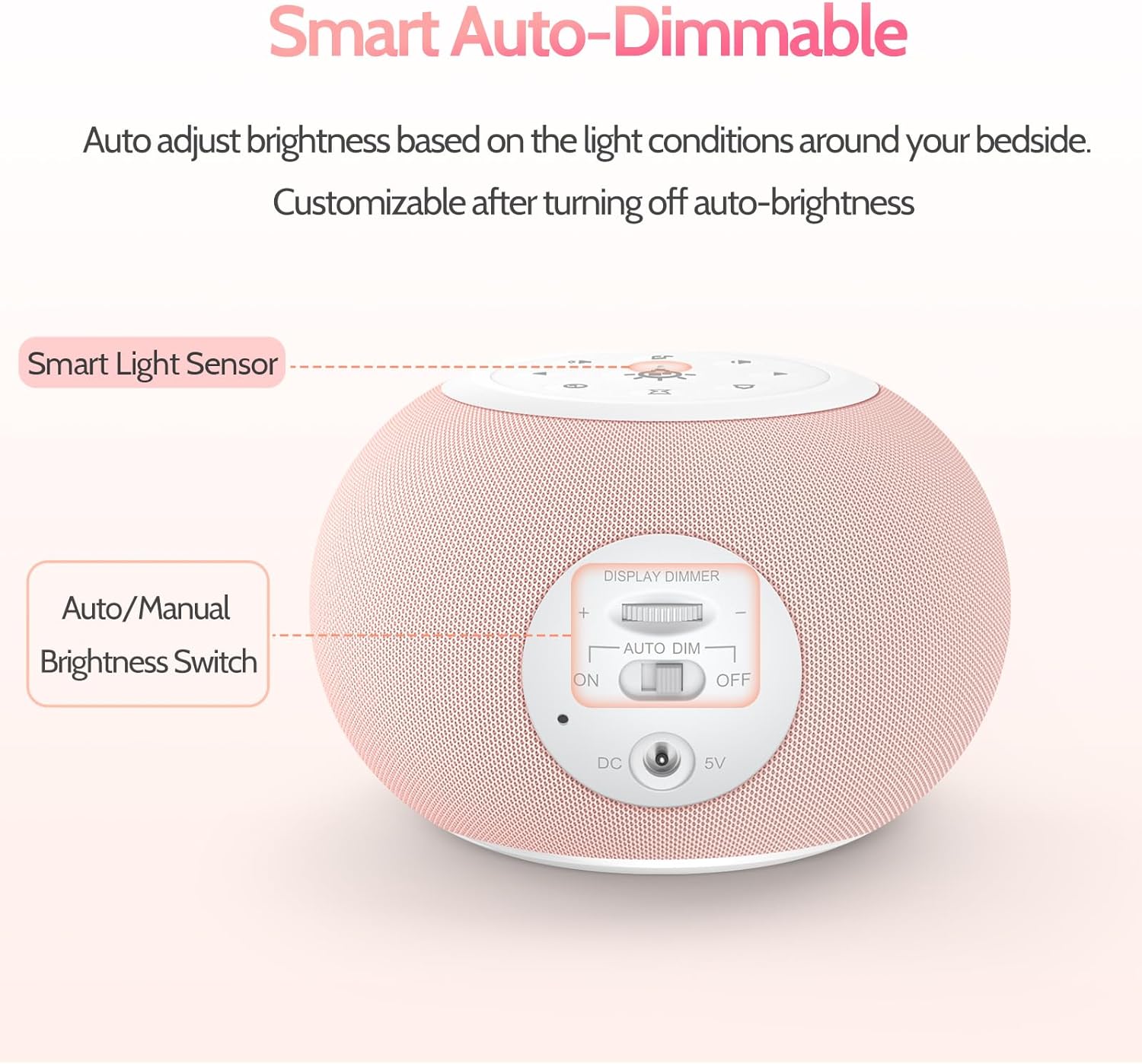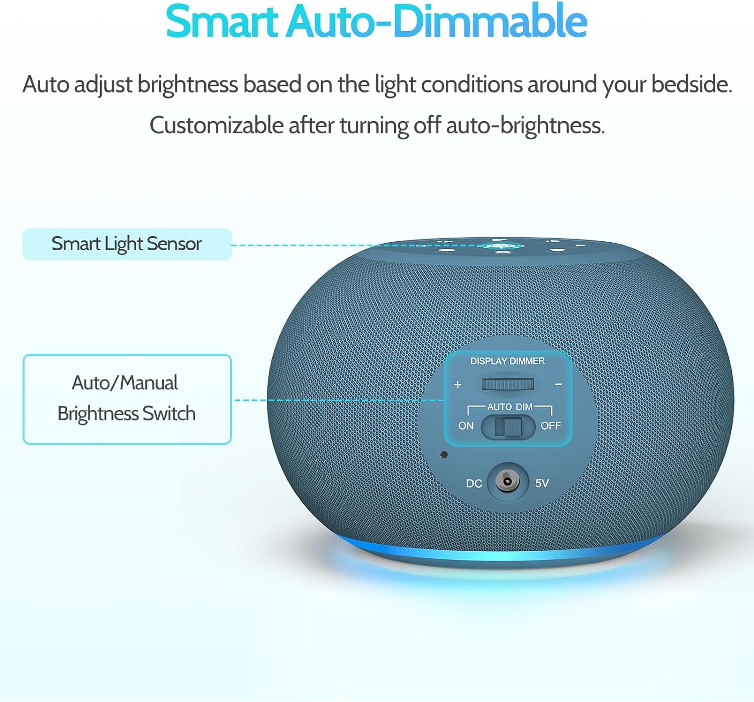 Reacher Auto-Dimmable Sound Machine Alarm Clock with Night Light, 20 Soothing Sounds, LED Digital Display, Sleep Timer, Precise Volume Control, White Noise Soother for Baby, Adults, Bedrooms