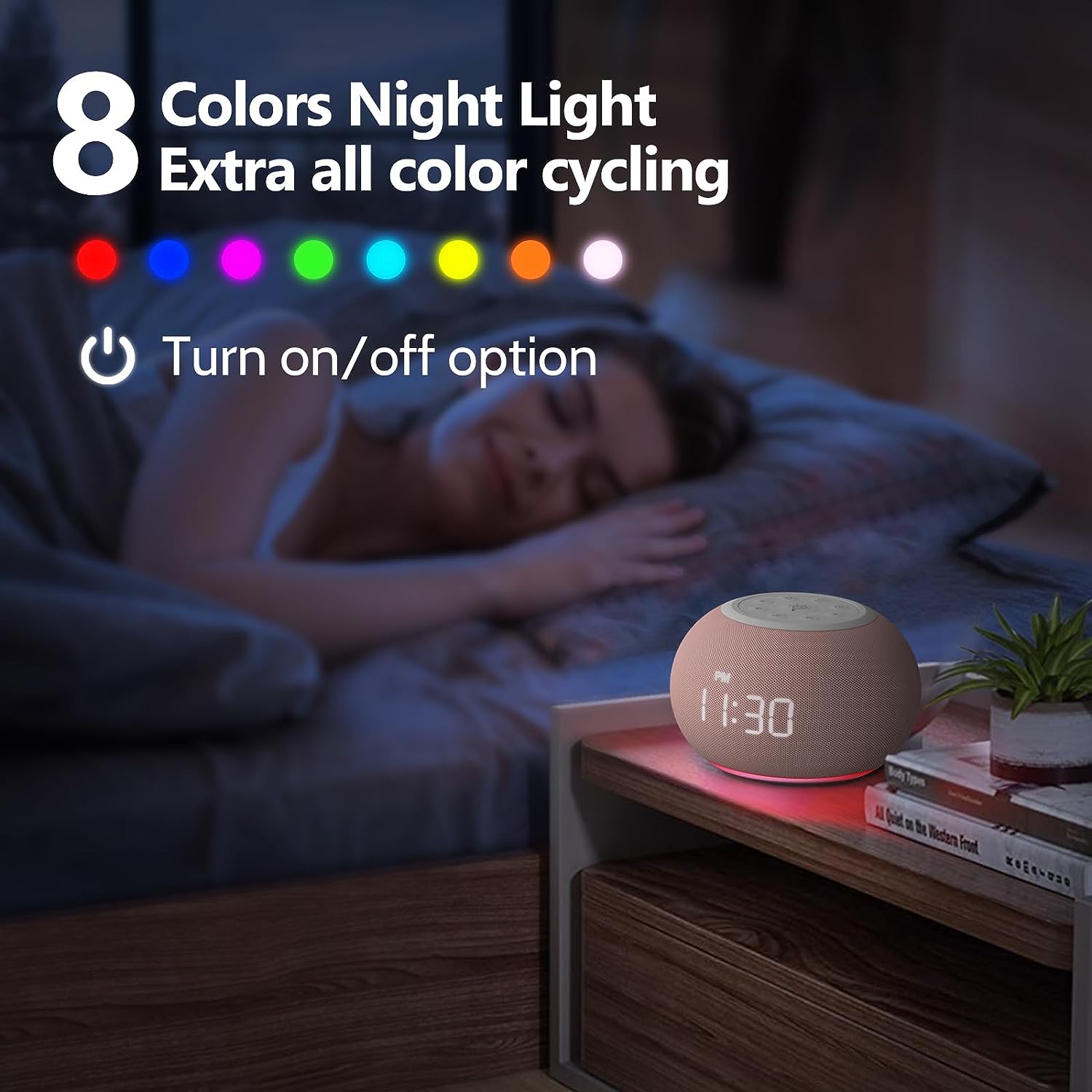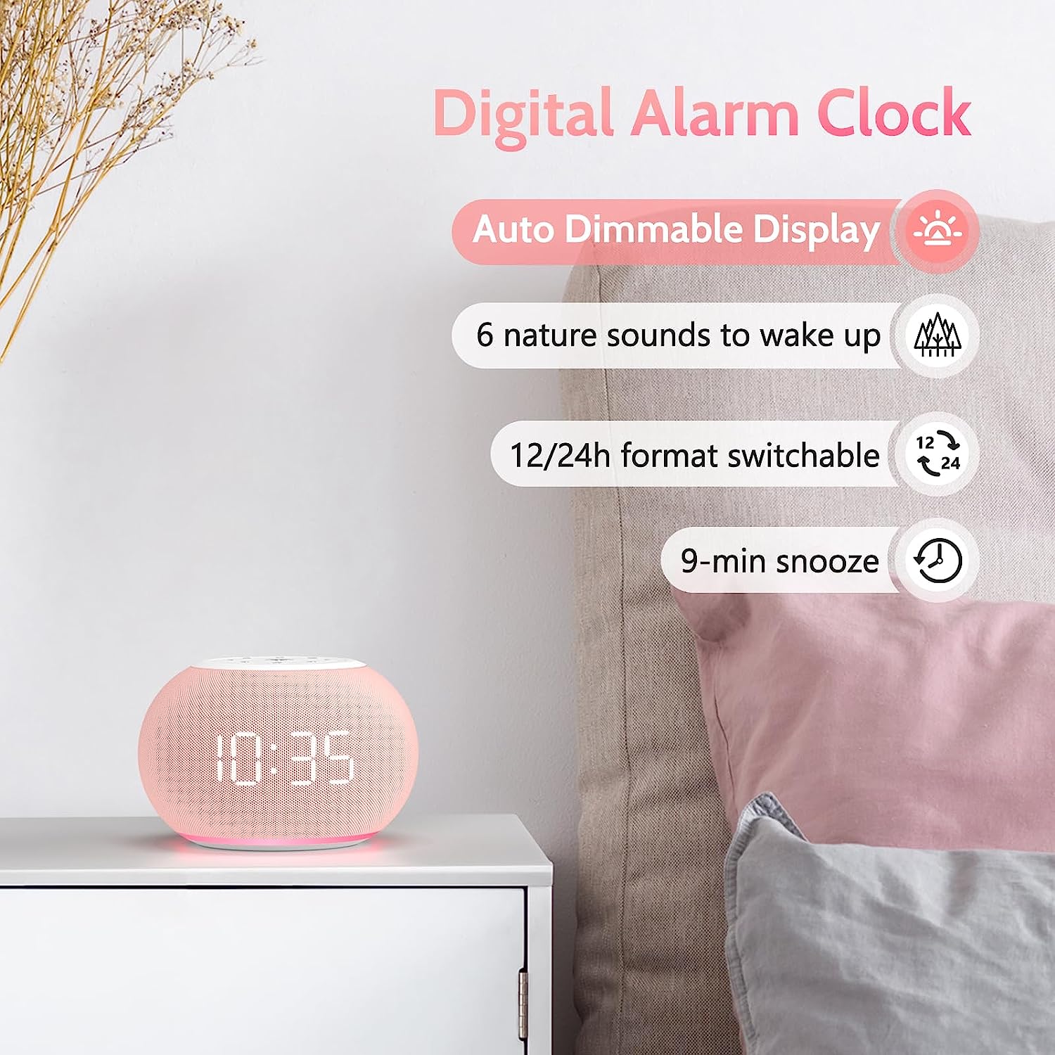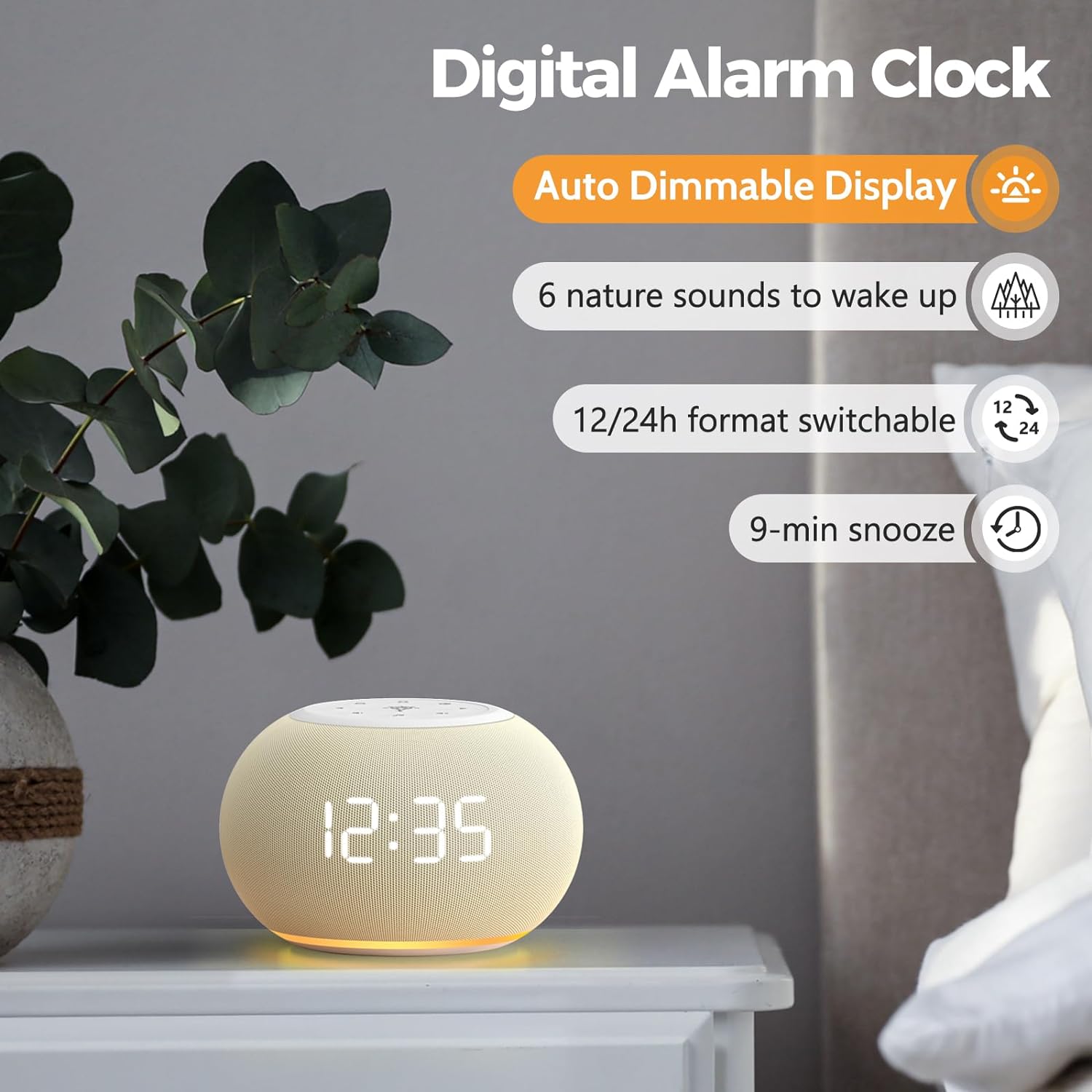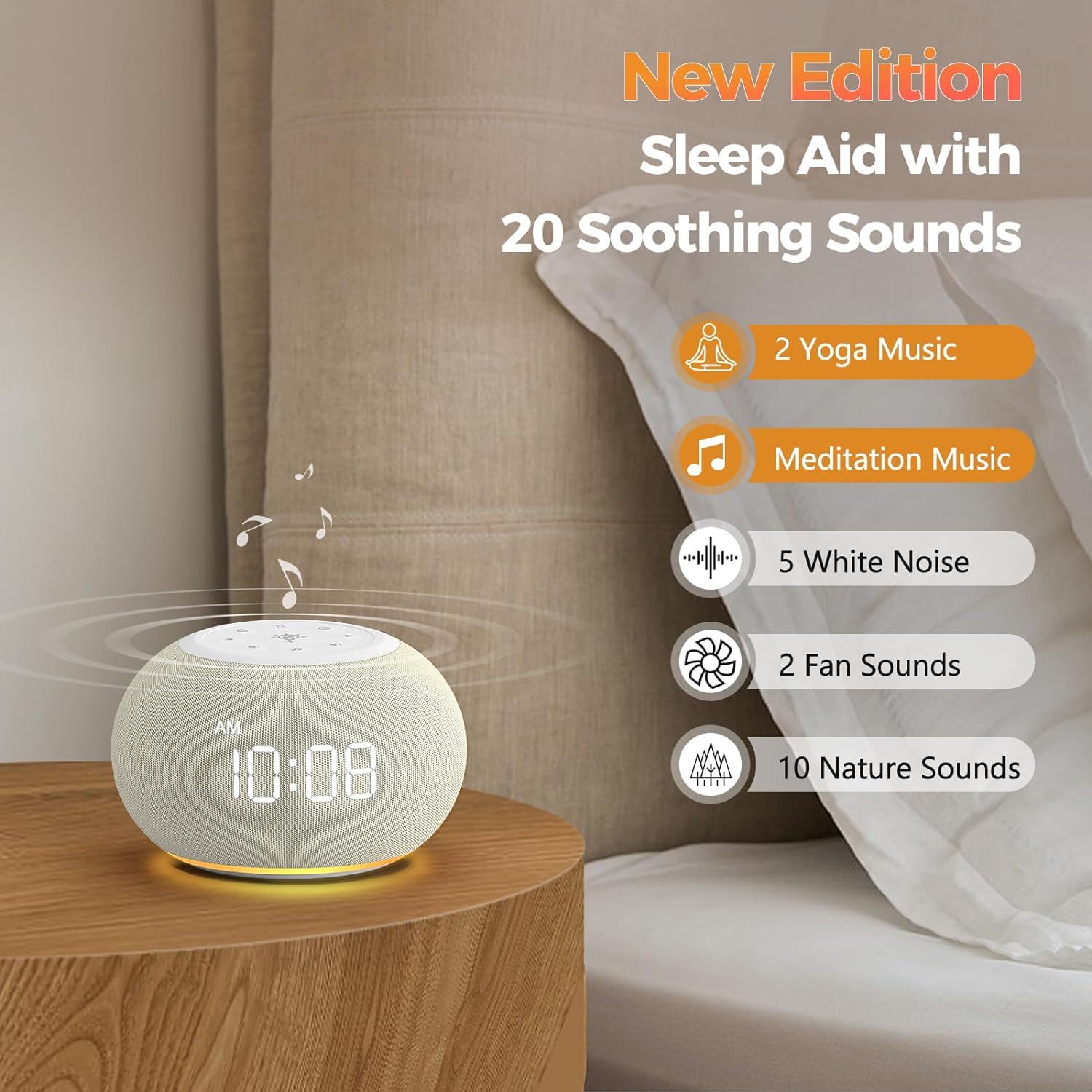 Reacher Auto-Dimmable Sound Machine Alarm Clock with Night Light, 20 Soothing Sounds, LED Digital Display, Sleep Timer, Precise Volume Control, White Noise Soother for Baby, Adults, Bedrooms