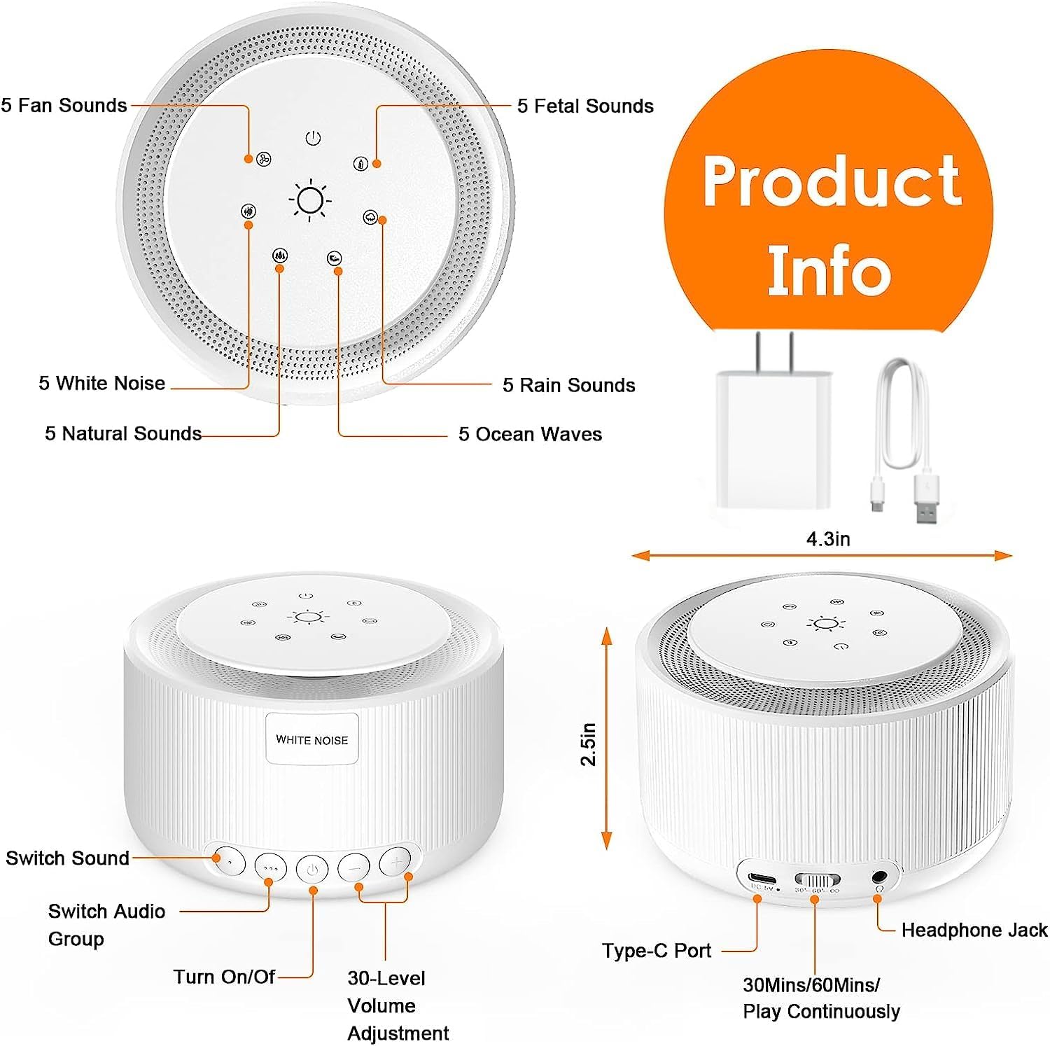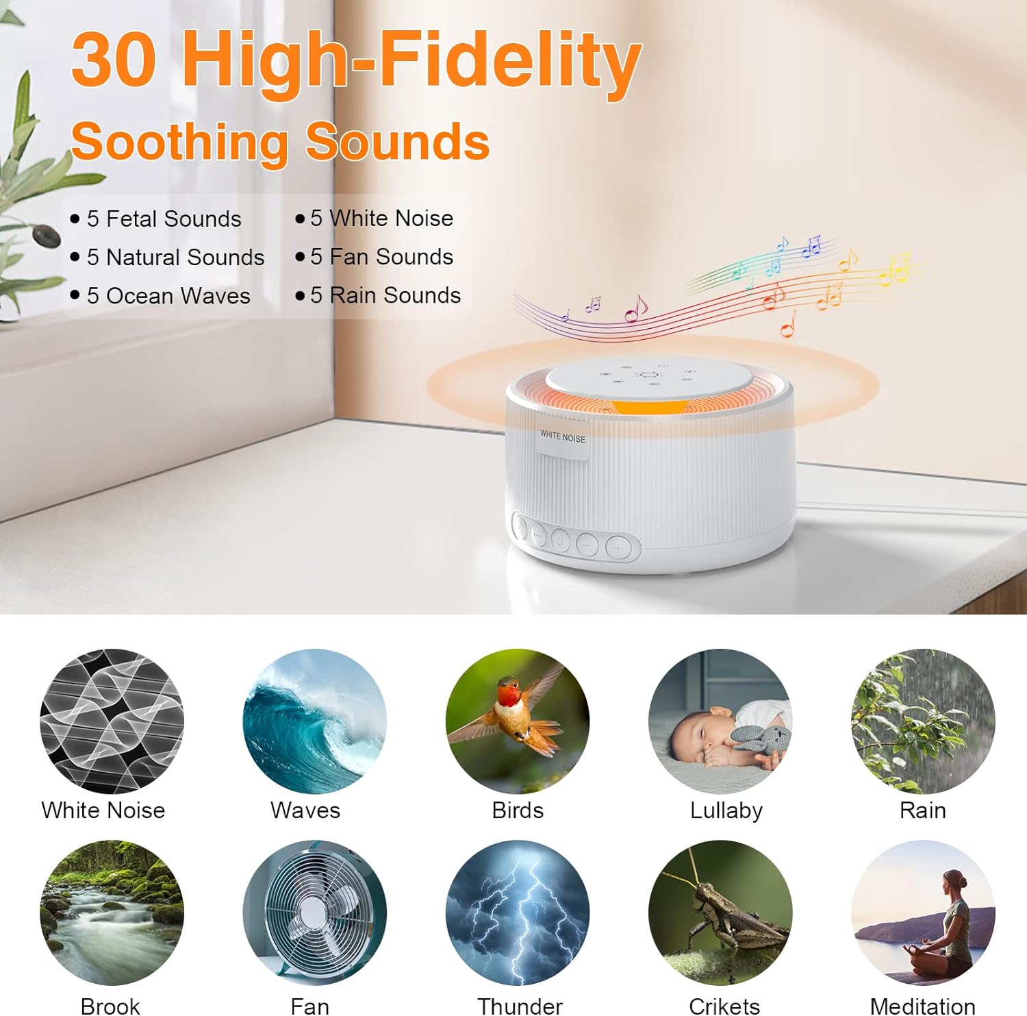 Sound Machine- STYFSCP White Noise Machine with 30 Natural Soothing Sounds 30 Level Volume Light 3 Timer Memory Function, Noise Machine Powered by AC or USB, Sleep Sound Machine for Adults Baby Kids