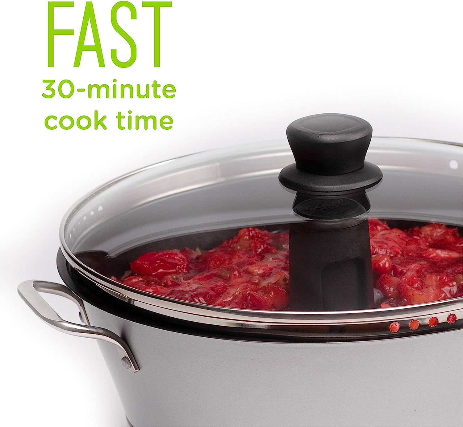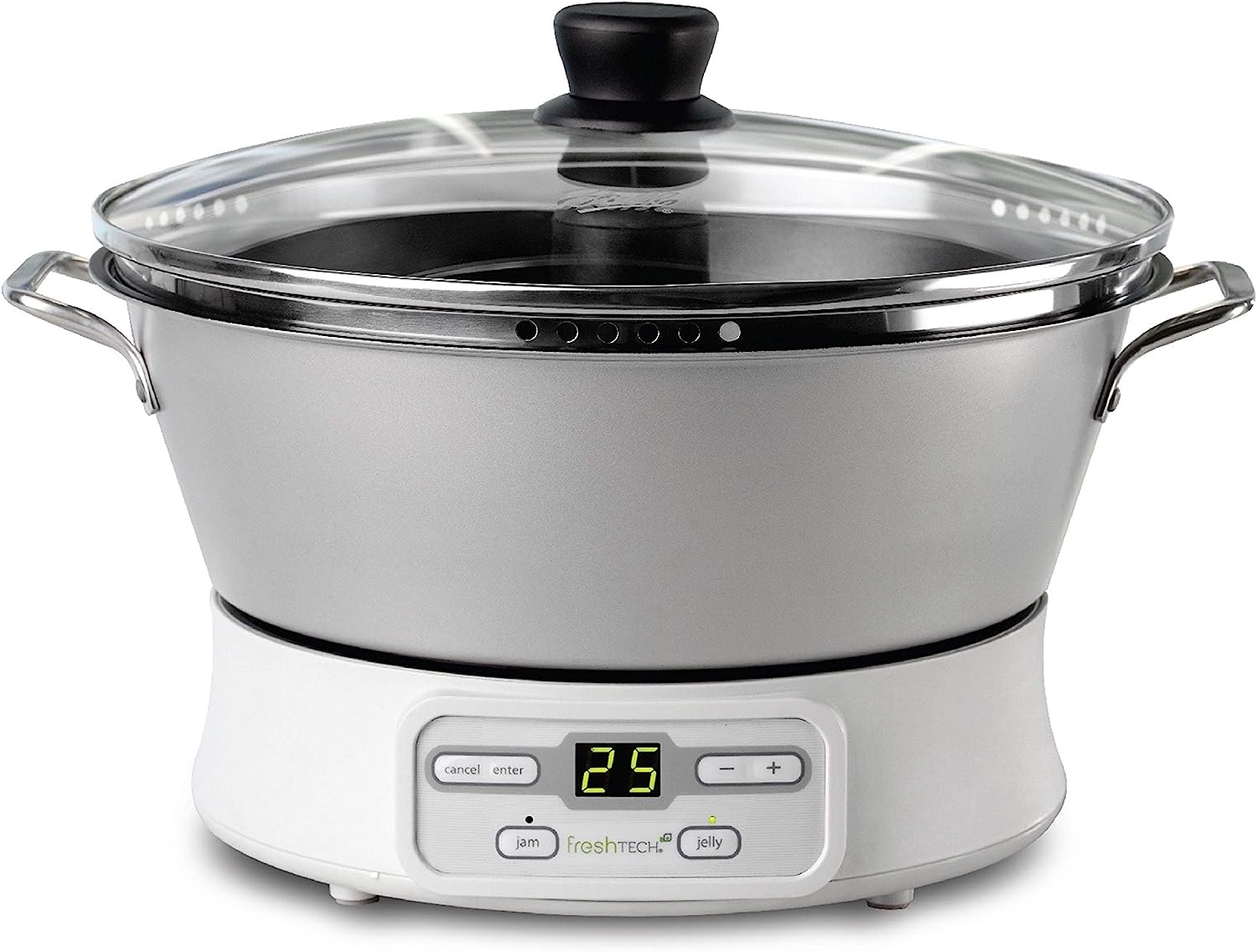 Treat your family to delectable fresh fruit preserves and spreads with the Ball freshTECH Automatic Jam and Jelly Maker. Create jams, jellies, marmalades, and more conveniently at home in just 30 minutes! Instead of the traditional time-consuming large-batch canning method, the user-friendly Automatic Jam and Jelly Maker can make small batches.
