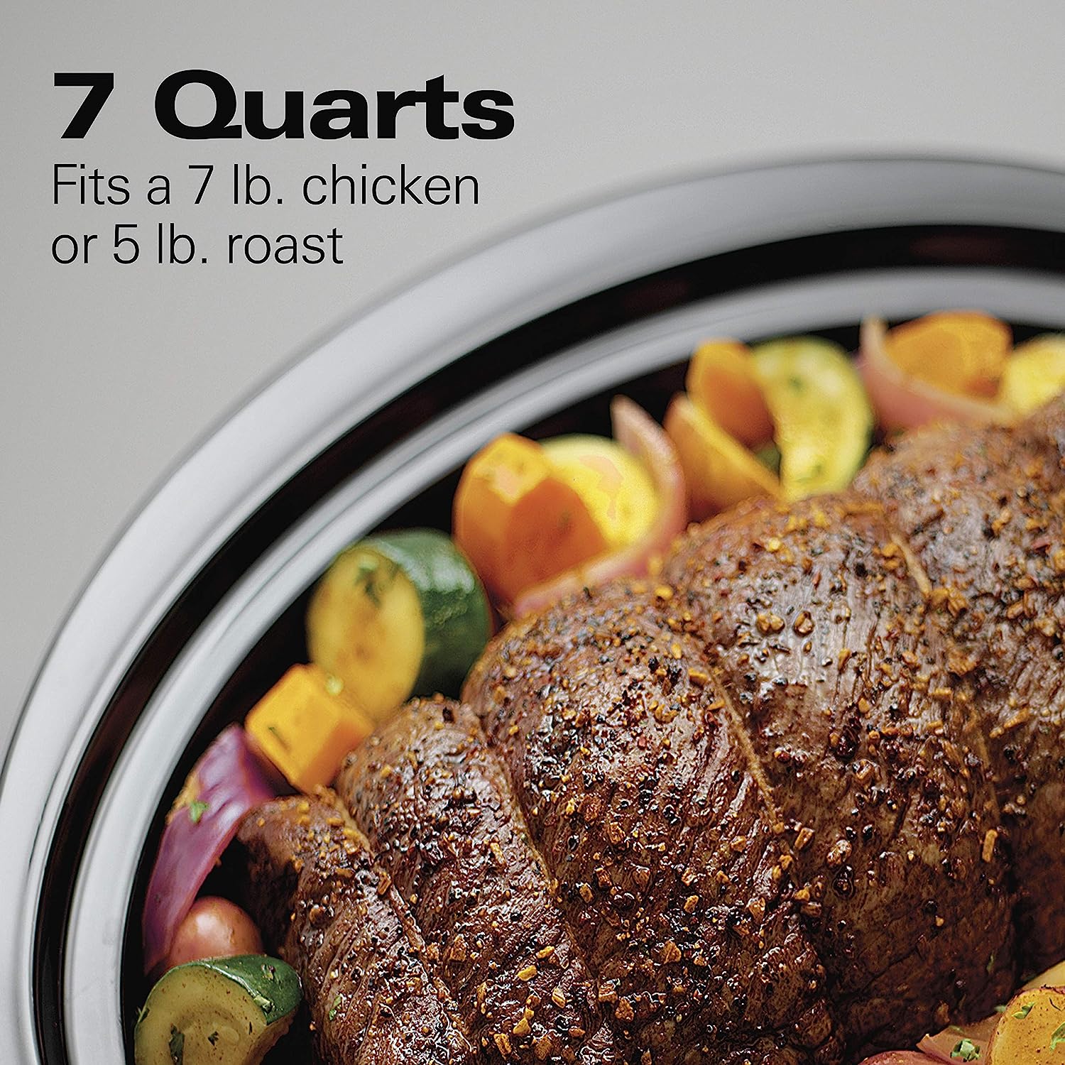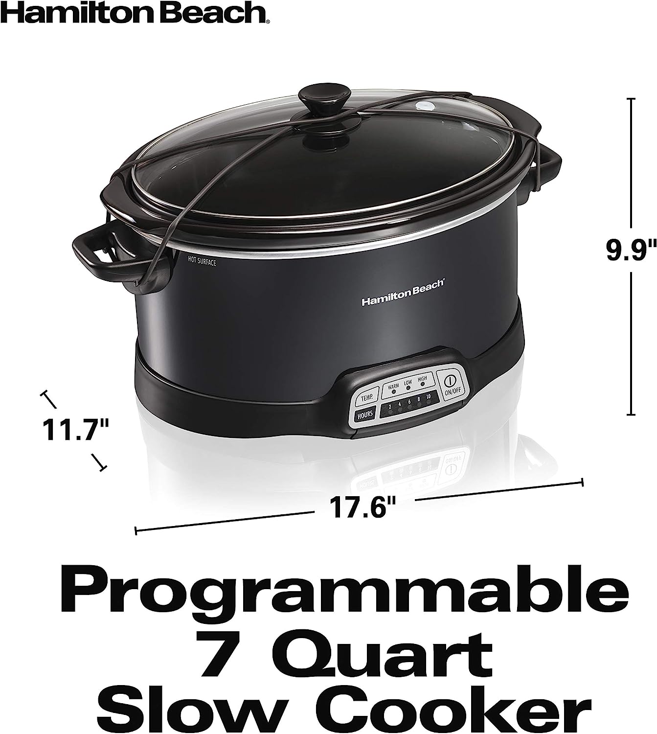 With the Hamilton Beach programmable 7 quart slow cooker, making a delicious, home-cooked meal is as easy as putting a few ingredients in the Crock and turning it on. Its large capacity and oval shape make it ideal for cooking a whole chicken or roasting meat to perfection. And with more programming options than Crock-Pot Smart-Pot, this Hamilton Beach slow cooker gives you the ultimate selection of temperature and cooking time combinations.