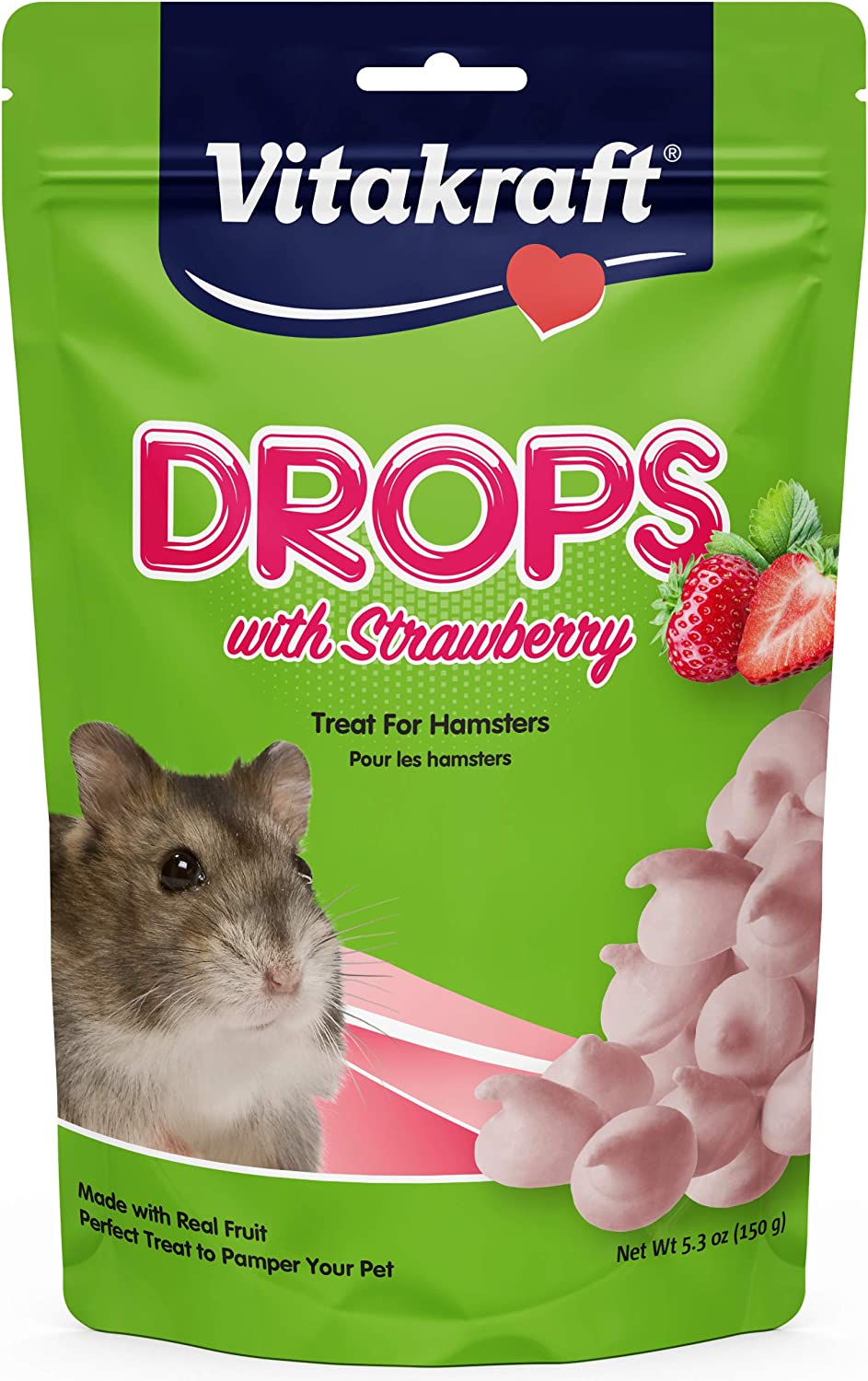 Vitakraft Drops hamster snacks are tasty, healthy, and indulgent small animal treats that show your tiny friend how much you love them. Chock full of strawberries and whey protein, these naturally flavored and naturally colored yogurt fruit snacks are the perfect treats for everyday snacking. There are lots of hamster supplies out there, but none with the quality of Vitakraft—give your hamster stuff you can both feel good about!