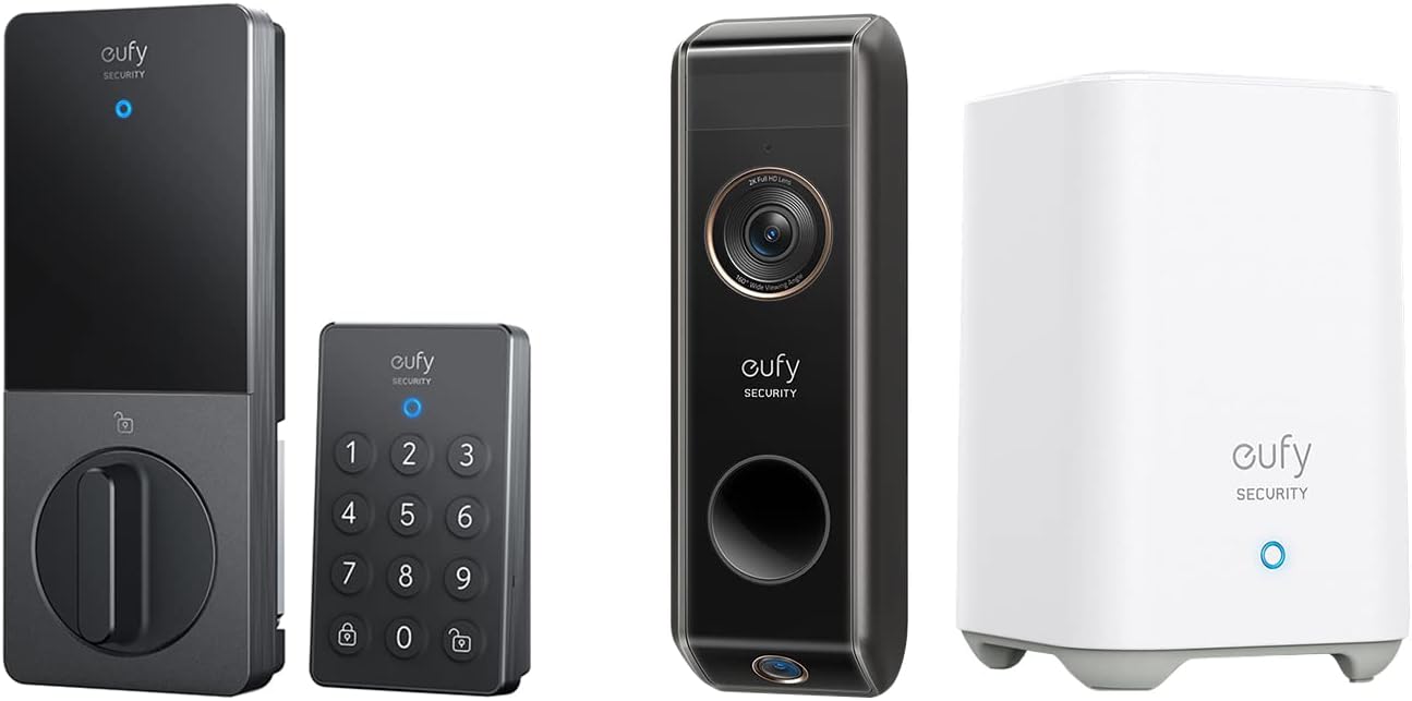 eufy Security Retrofit Smart Lock E110+Wireless Keypad, Fits Your Existing Deadbolt + Video Doorbell Dual Camera (Battery-Powered) with HomeBase, No Monthly Fee, Local Storage