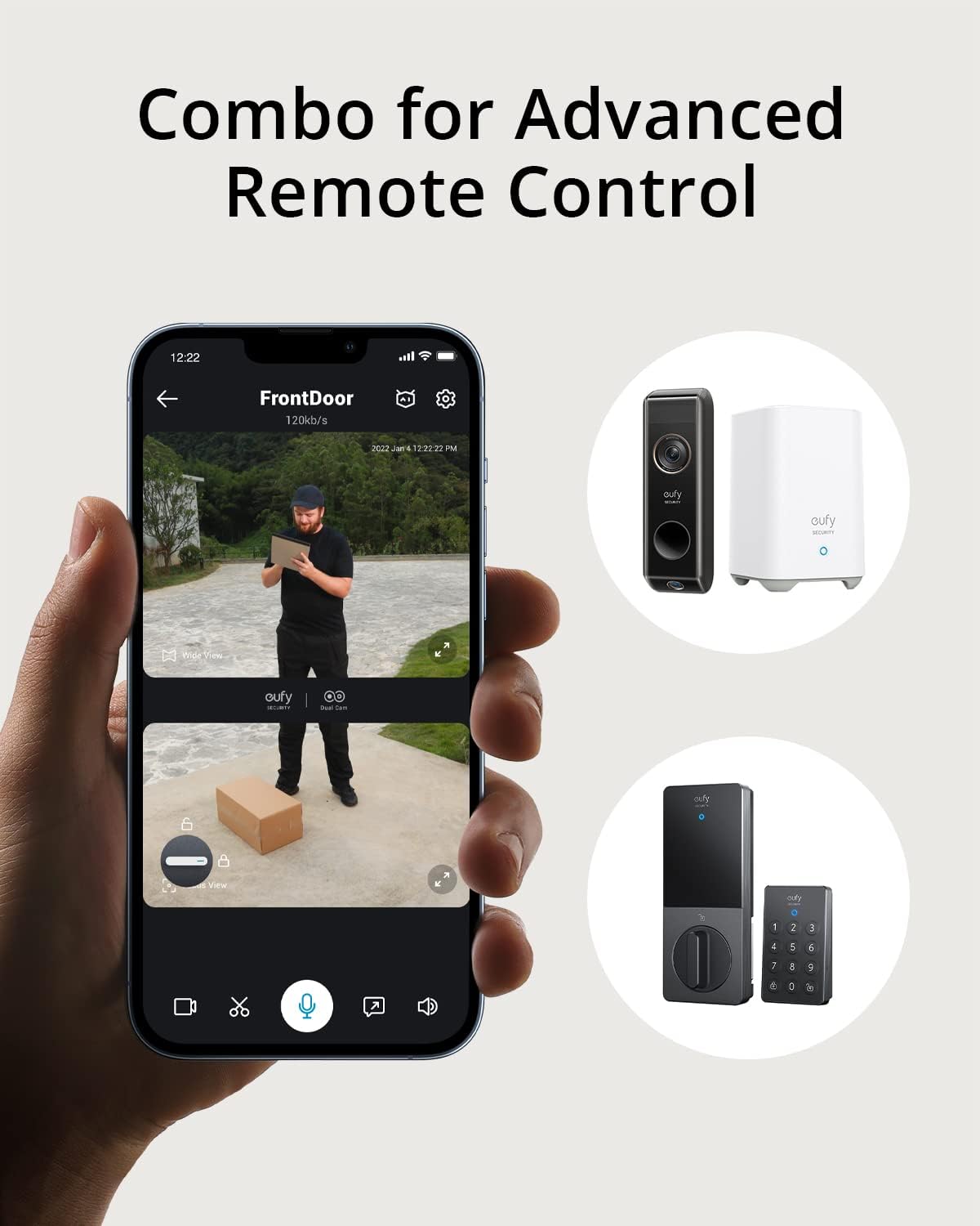 • - Control From Anywhere: With Dual Cam Technology, blindspots are eliminated and your doorstep is in full view. Unlock Smart Lock from anywhere, anytime, right from your phone via the eufy Security app. Let in friends and guests without having to get up, or unlock for your cleaner or kids while you’re at work.