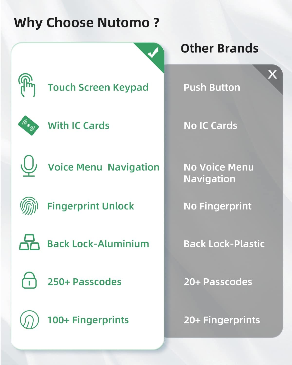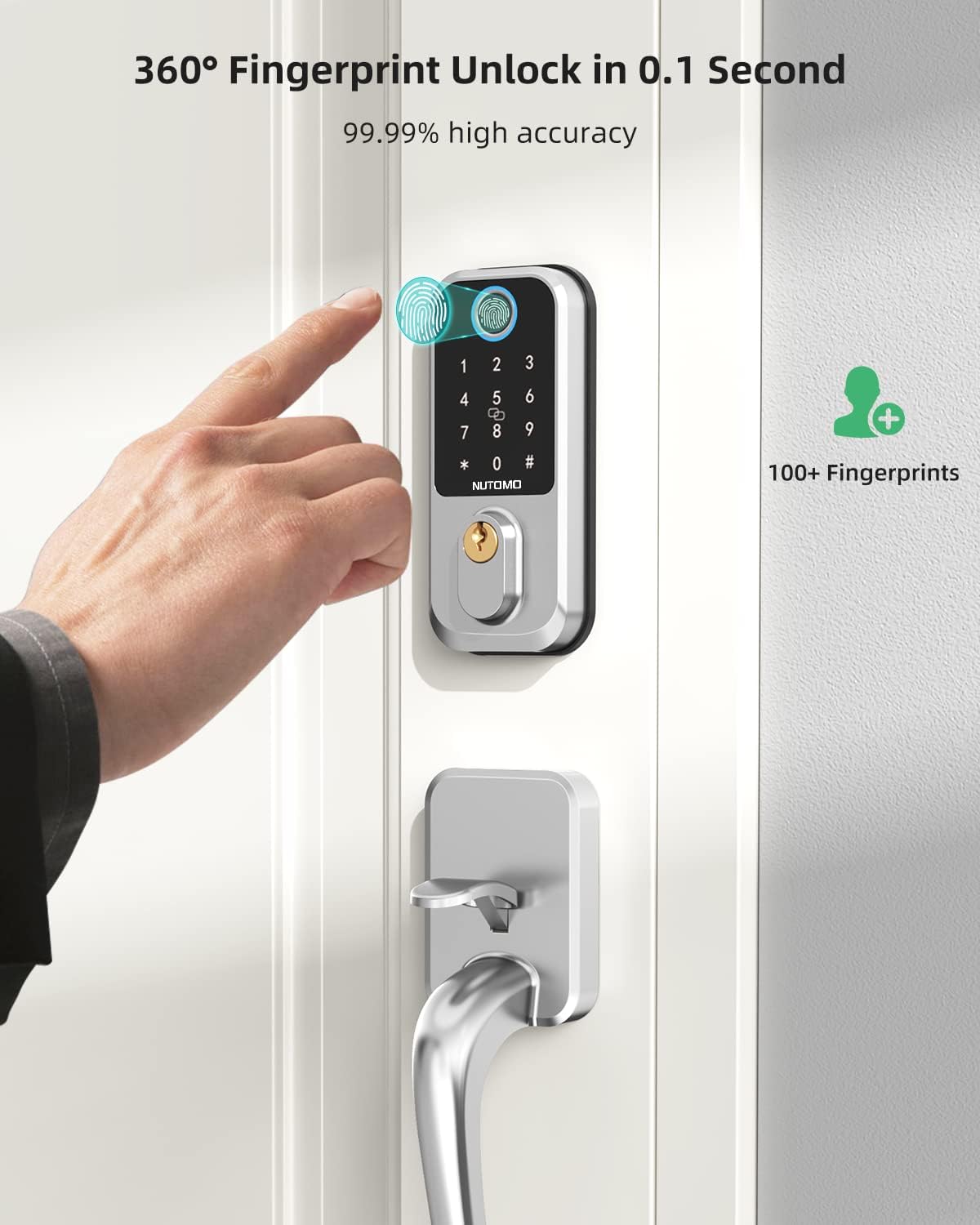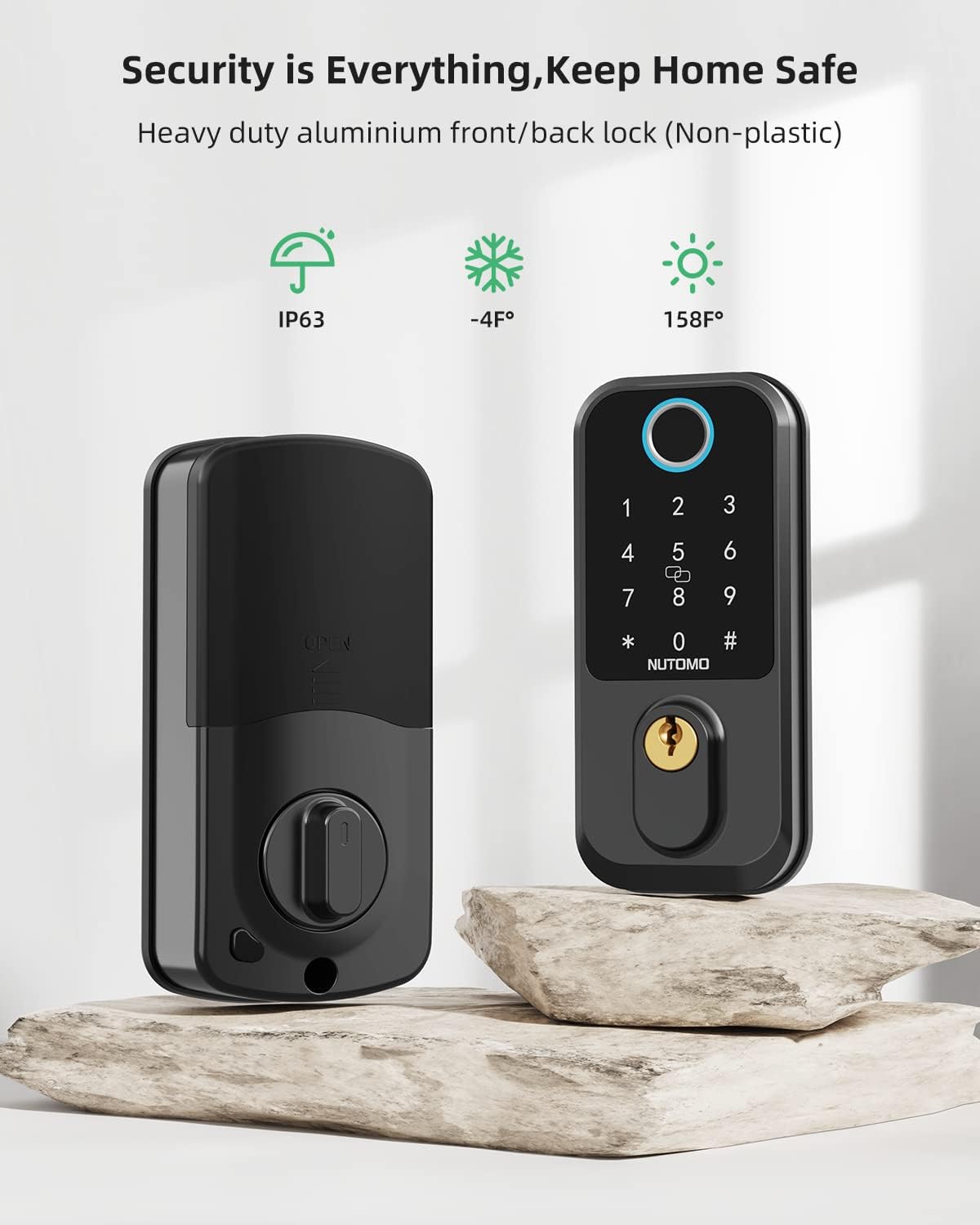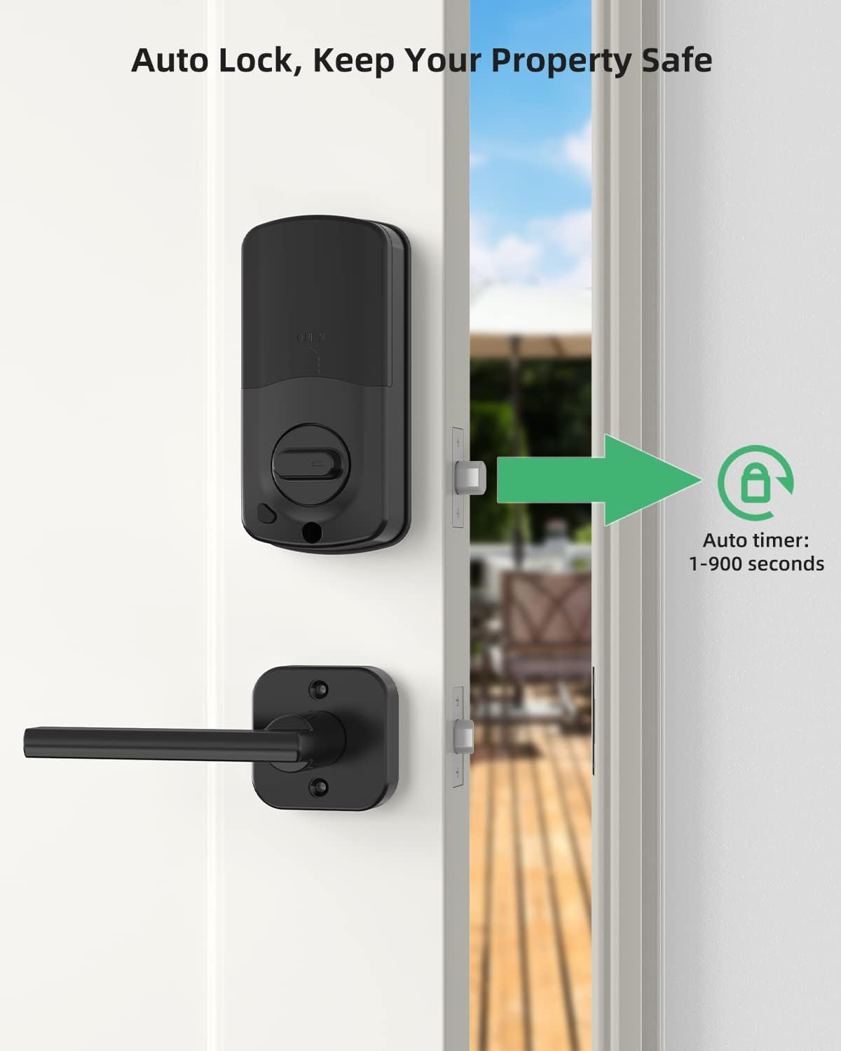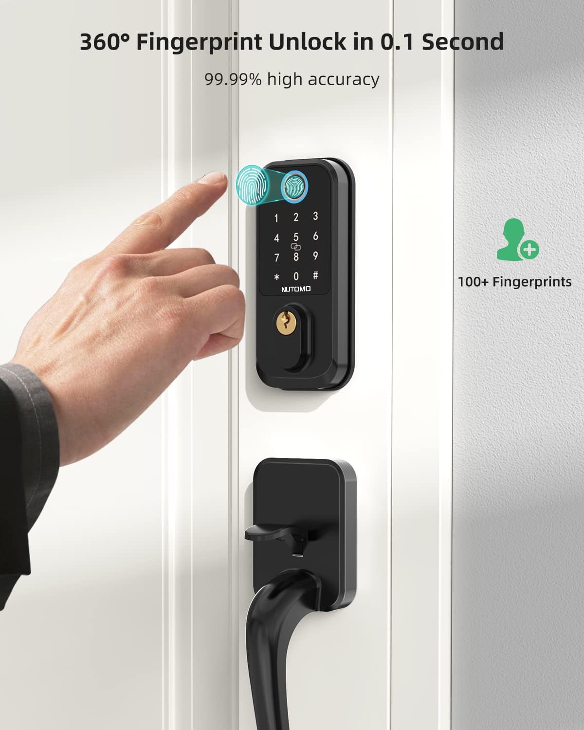 • 🔒【Auto Lock & Reliable Service】Auto Locks in seconds after unlock(Set auto-lock time freely, 1-900s), no more worry if you forget to lock the door. Nutomo smart locks for front door provides 30-Day money back guarantee,1 year warranty and free lifetime technical support.Please feel free to contact us if any issue. We will response you within 12 hours.
