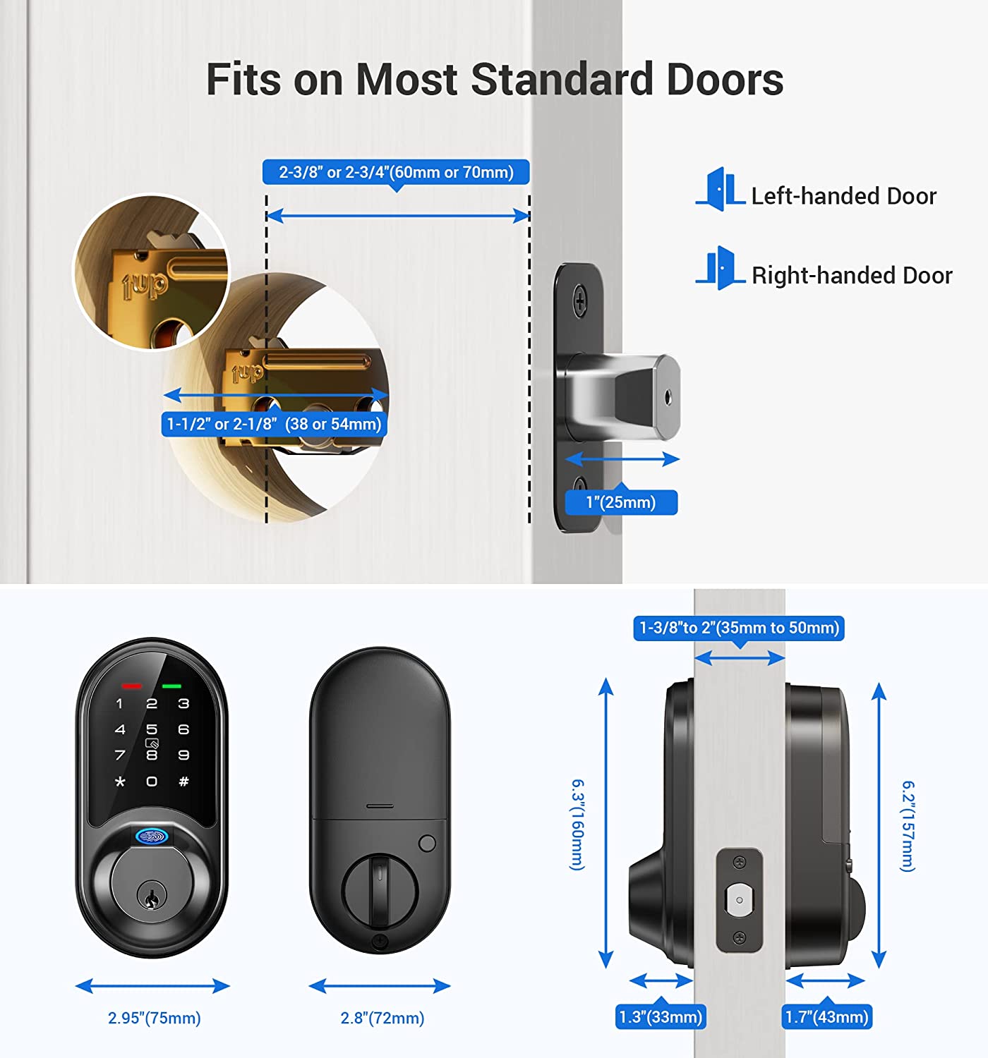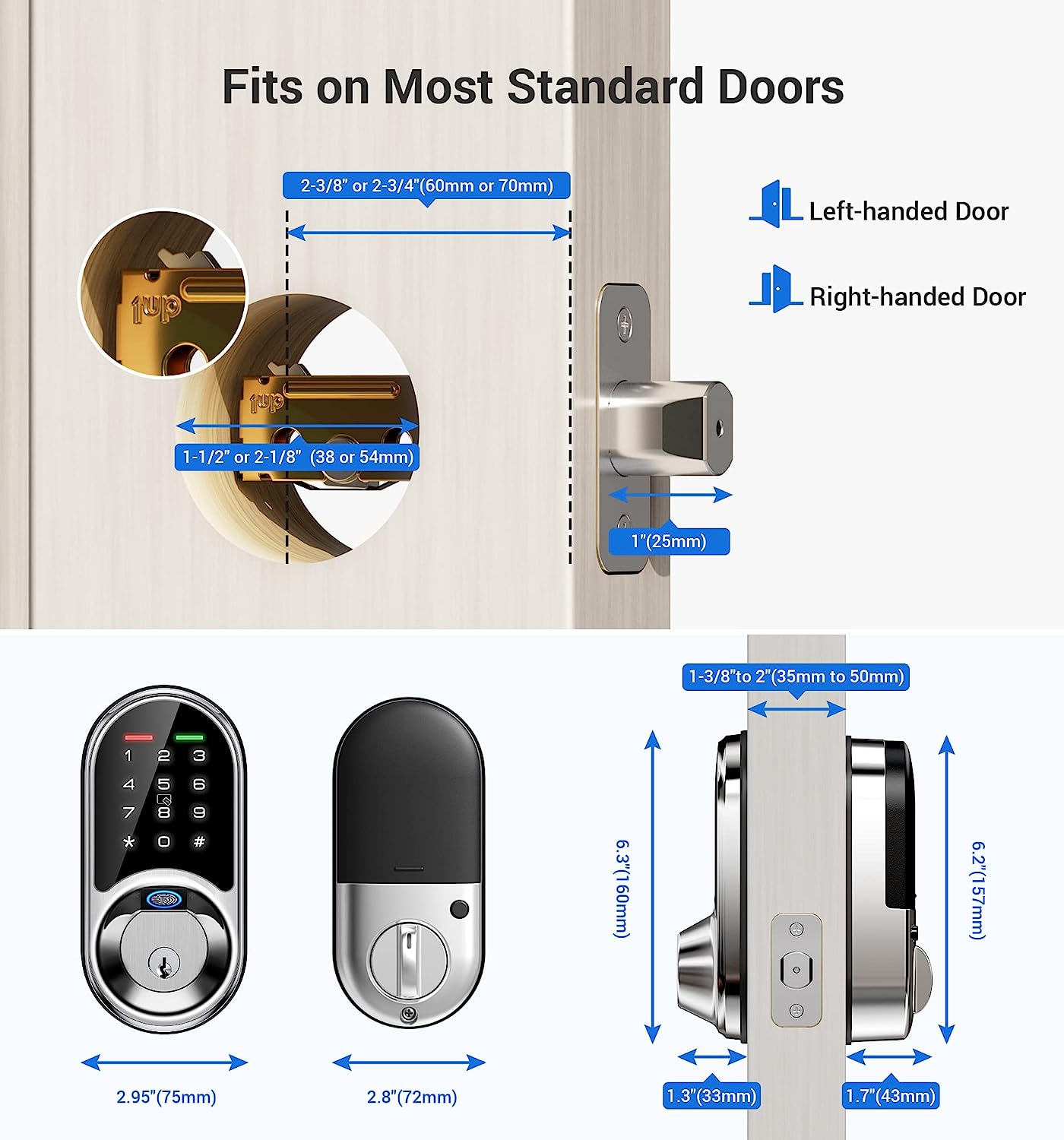 • Quality Assurance: Veise smart deadbolt fits on US standard left-handed and right-handed doors. Easy to install with just a screwdriver. Veise offers 1-year product warranty and lifetime customer online phone support from Monday to Friday 9 AM to 5 PM EST.