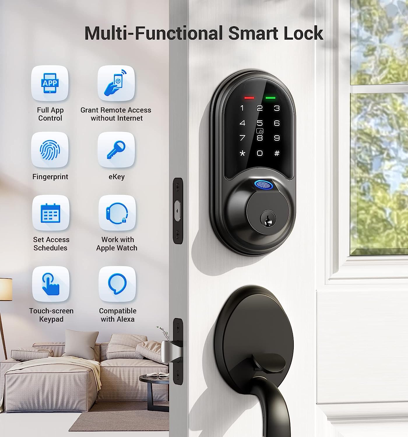 Veise Smart Lock, Fingerprint Door Lock, 7-in-1 Keyless Entry Door Lock with App Control, Electronic Touchscreen Keypad, Smart Deadbolt, Biometric Smart Locks for Front Door, Matte Black