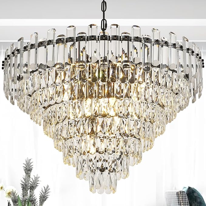 8-Tiers 18 Lights Modern Black Crystal Chandelier 31.5'' Contemporary Round Pendant Chandeliers Light Luxury Ceiling Hanging Lighting for Living Dining Room Kitchen Island Entryway Foyer