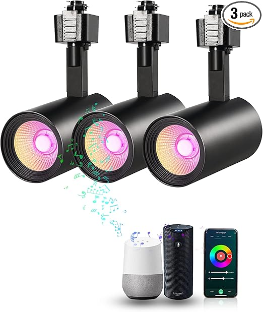 CLOUDY BAY [3 Pack] Smart WiFi LED Track Lighting Heads, Track Light Heads Compatible with Alexa Google Home, RGBCW Color Changing, No Hub Required, 2700K-5000K, CRI 90+, 750LM, Black