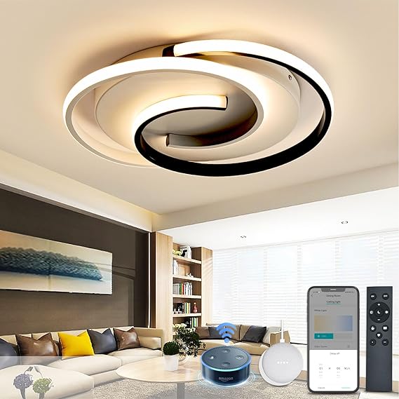 Smart Modern Ceiling Light, LED Ceiling Lights with Alexa Google Home, Dimmable Flush Mount Chandelier Fixture, Remote Control Ring Ceiling Lamp for Living Room Bedroom Dining Room, TY-1951