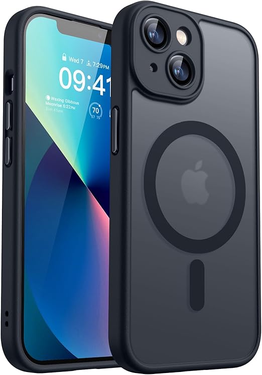 CANSHN Magnetic for iPhone 13 Case, Upgraded [Full Camera Protection] [Compatible with Magsafe] [Translucent Matte] Shockproof Protective Phone Case for iPhone 13 6.1" - Black