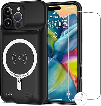 Battery Case for iPhone 16 Pro, [10000mAh] Enhanced Portable Protective Smart Qi Wireless Charger With CarPlay Compatible for iPhone 16 Pro (6.3 inch) - Black