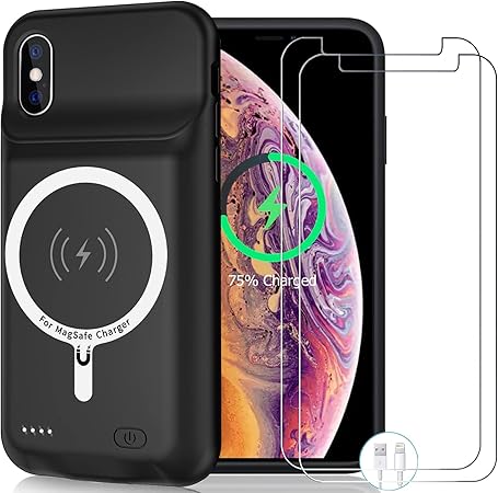 Wireless Charging Case for iPhone X/XS, 10000mAh High Capacity Rechargeable Protective Battery Case Wireless Charging Compatible with iPhone X/XS/10 (5.8 inch) Extended Battery Charger Case (Black)