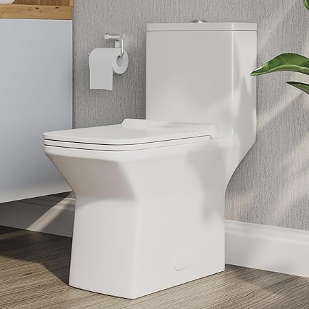DeerValley Elongated One Piece Toilet, DV-1F0072-1 Square Compact Toilets for Bathrooms, Dual Flush 1/1.6 GPF and MaP 1000g, 12'' Rough-In Chair Height 16.93" Ceramic White Toilet With Soft Close Seat