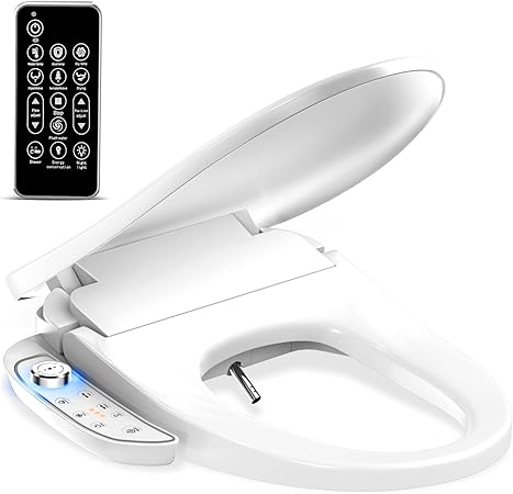 Electric Bidet Toilet Seat with Wireless Remote - Elongated Heated Bidet Toilet Seat - Bidet Warm Water with Dryer - Luxury Bidet Toilet Seat with Soft-Closing - LED Nightlight - Self-Clean Nozzle