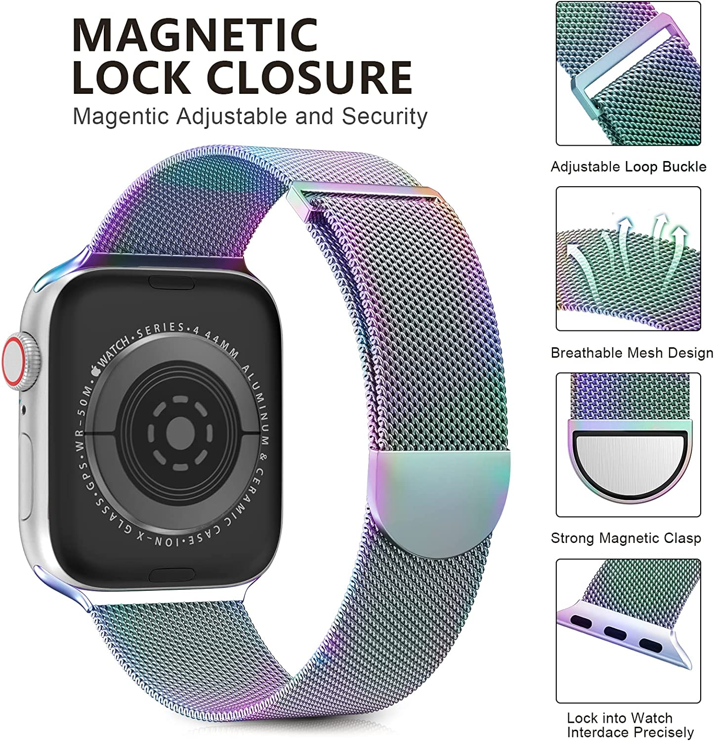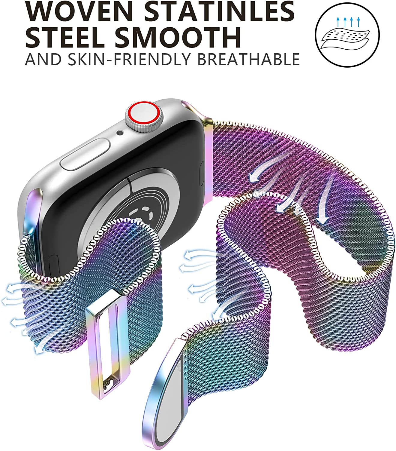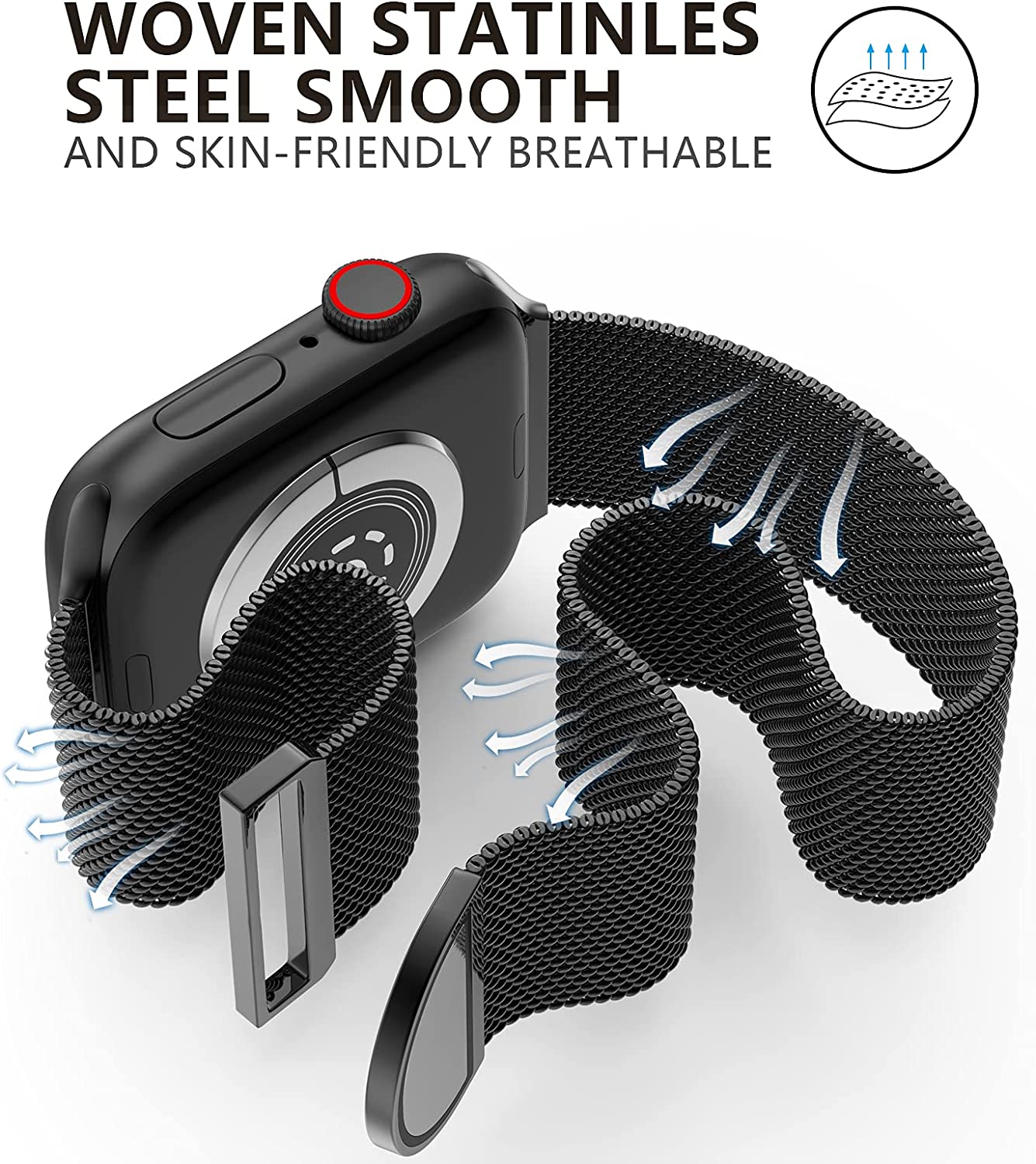 • ✅【Multiple Color Choose ------ Ideal Gift for Women & Men】: Black / Silver / Rose Gold / Champagne Gold / Space Grey etc. multi-color magnetic mesh bands for your choices, different color magnetic stainless steel watch bands make your iwatch look unique. Perfectly wear as accessories in business meetings and parties and very proper to be used as gifts for Wedding, birthday, Valentines' day, Mothers' day, Christmas, Thanksgiving Day etc.