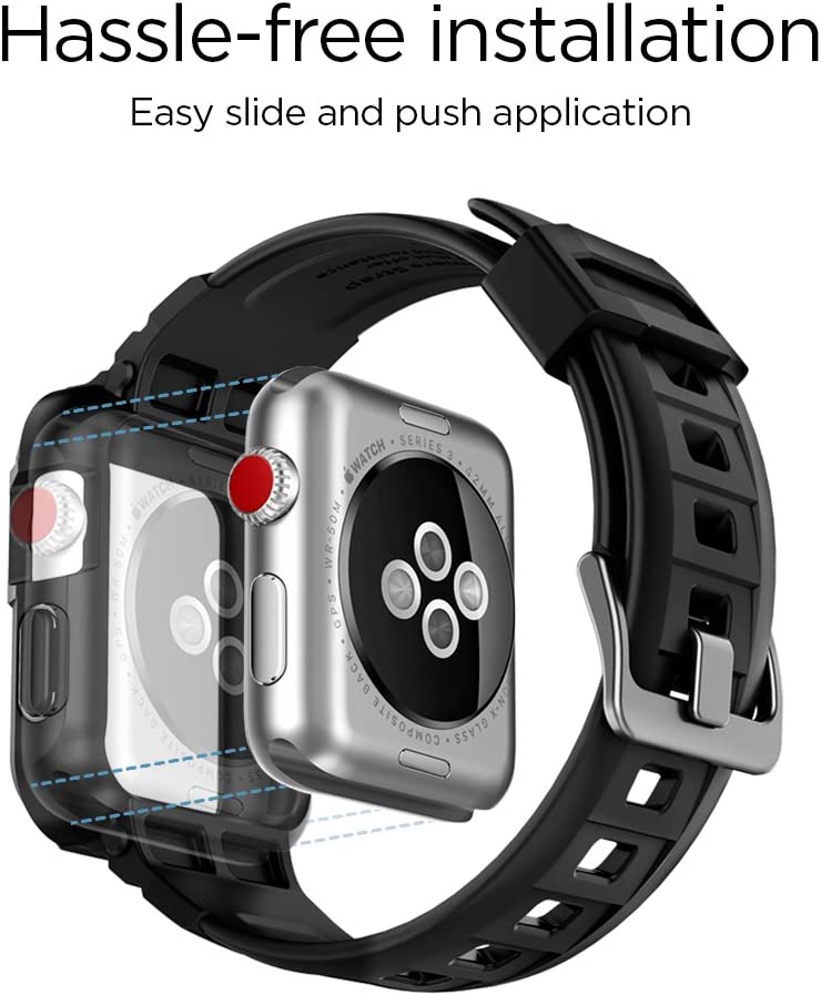 Spigen Rugged Armor Pro Designed for Apple Watch Band with Case for 42mm Series 3/2/1/Original (2015) - Black