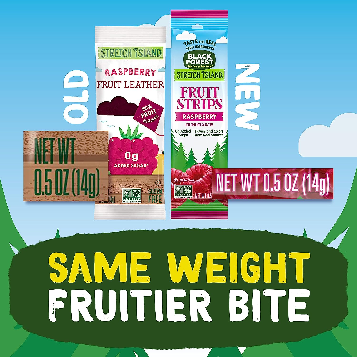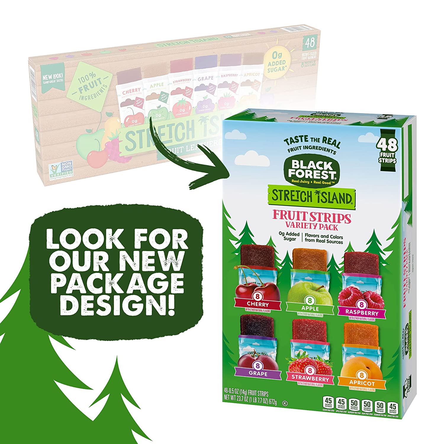 Black Forest Stretch Island Fruit Strips are the snack to add fruity goodness to your day. Taste the real fruit ingredients in our simple fruit strip – soft texture for the perfect bite and 0g of added sugar. This variety box includes 48 individually wrapped 0.5 ounce fruit strips in 6 flavors: Cherry, Apple, Raspberry, Grape, Strawberry, and Apricot. These delightful fruit strips are made with flavors and colors from real sources, are non-GMO, Kosher and gluten free. They’re great to keep on hand in the pantry for all sorts of things like everyday lunch packing and on-the-go snacking. Crafted with care, our fruit strips are love at first bite. Indulge in these irresistible treats that will sweeten up your celebrations, making them the perfect addition to elevate your summer gatherings, including Fourth of July, Memorial Day, and more.