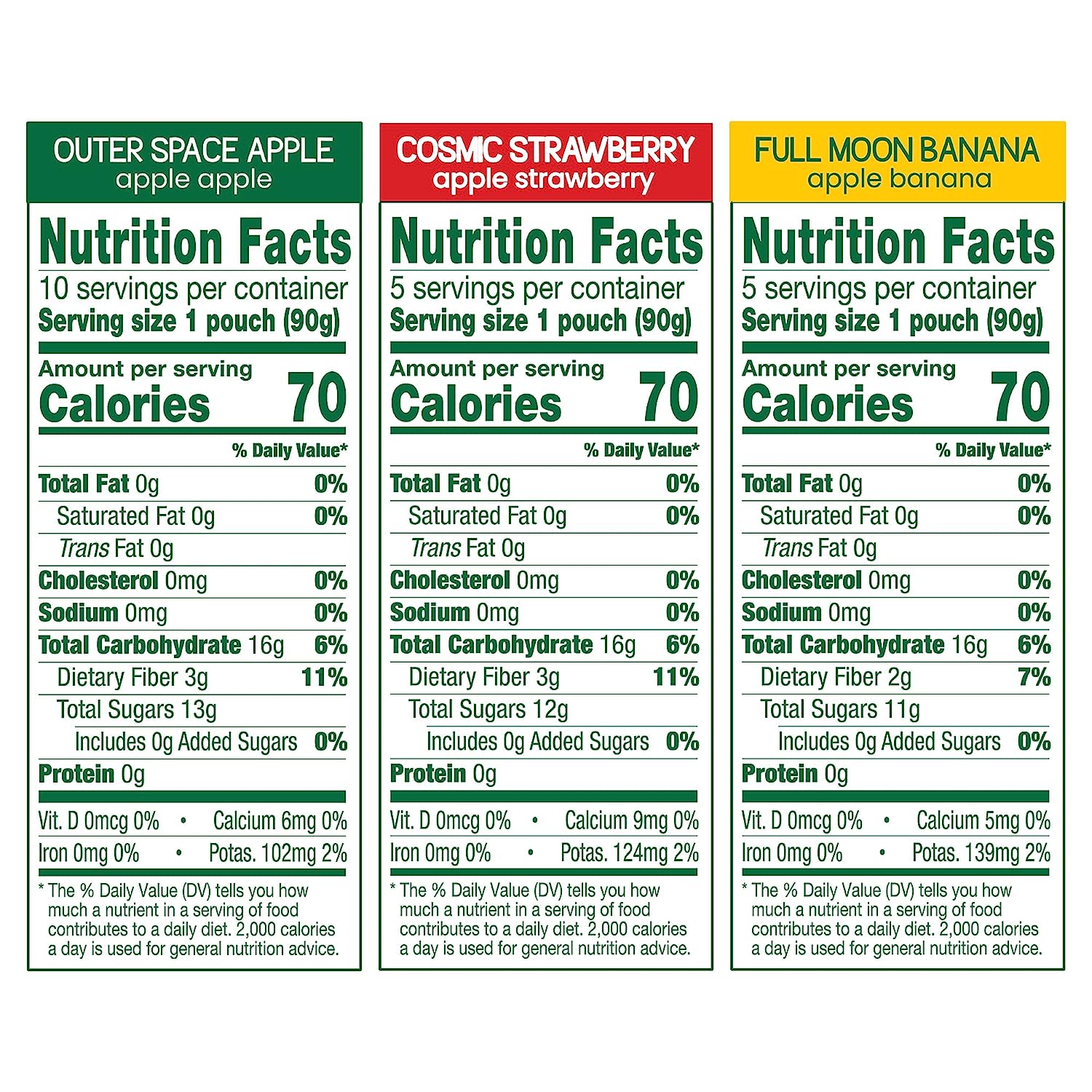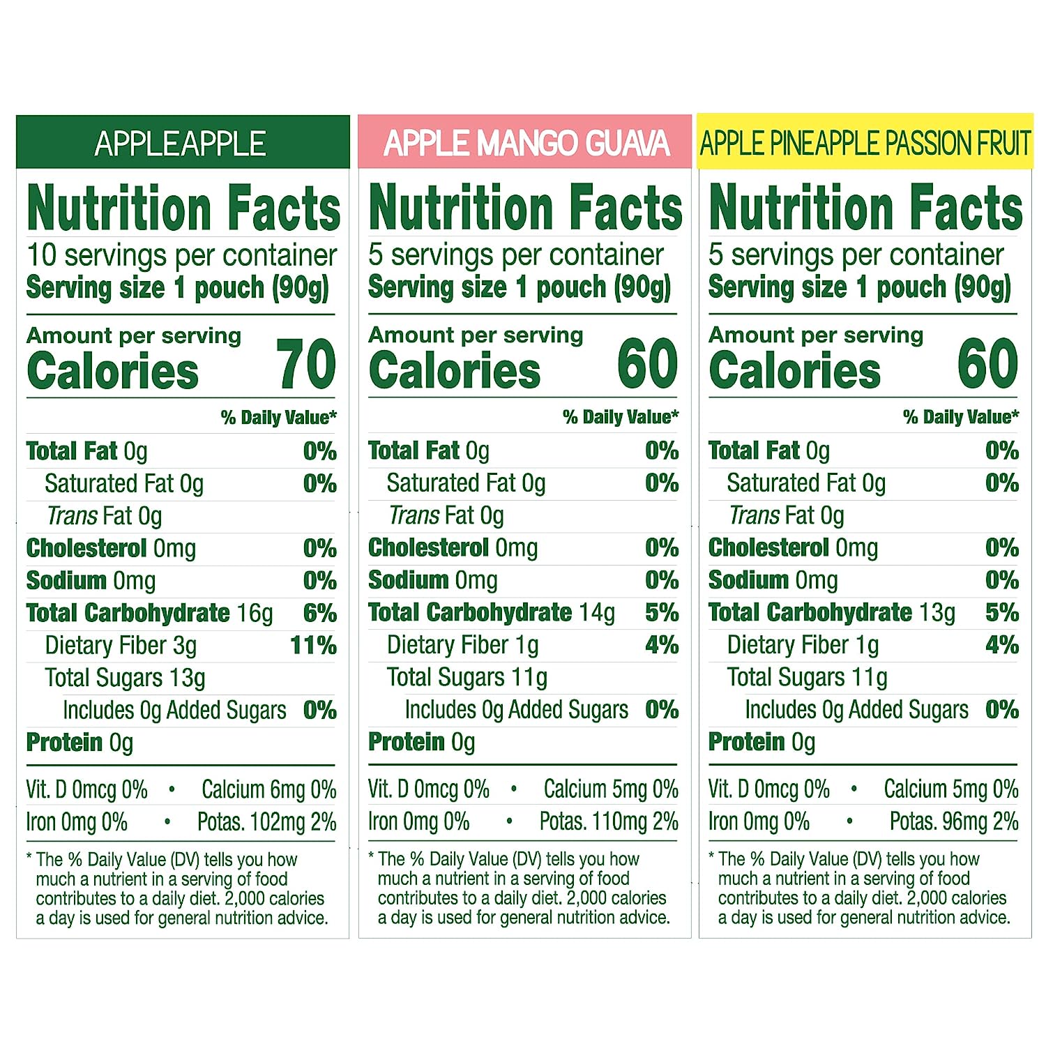 Stock up with this variety pack of three yummy GoGo squeeZ Fruit on the Go varieties: Apple Apple, Apple Banana and Apple Strawberry. GoGo squeeZ Fruit on the Go Apple Apple is our signature applesauce flavor, made with apples and yumminess, for a tasty snack anytime, anywhere. GoGo squeeZ Fruit on the Go Apple Banana is the perfect combination of deliciousness and nutritiousness. GoGo squeeZ Fruit on the Go Apple Strawberry is jammmed packed with apples, strawberries and yumminess for a sweet and delicious snack anytime, anywhere. These unsweetened fruit snacks are made from fruit with no high fructose corn syrup (HFCS), no added colors or flavors and no sugar added.* All that lip-smacking fruit in one no-fuss, no-mess and convenient kids snack! GoGo squeeZ unsweetened fruit snacks are Non-GMO Project Verified, gluten free, nut free, dairy free and kosher certified. Our products are free of all 9 major allergens, so you, your kids and your whole family can enjoy GoGo squeeZ snacks with confidence and share them without worry. GoGo squeeZ pouches are BPA free and feature easy-open caps and a built-in straw. No spoon, and no mess! From GoGo squeeZ Fruit on the Go, GoGo squeeZ fruit and veggieZ, GoGo BIG squeeZ, GoGo squeeZ Happy tummieZ, and GoGo squeeZ Morning smoothieZ to GoGo squeeZ yogurtZ, there's a variety of snacks to please every child (and adult!) in your family. *Not a low calorie food. See nutrition information for sugars and calorie content.