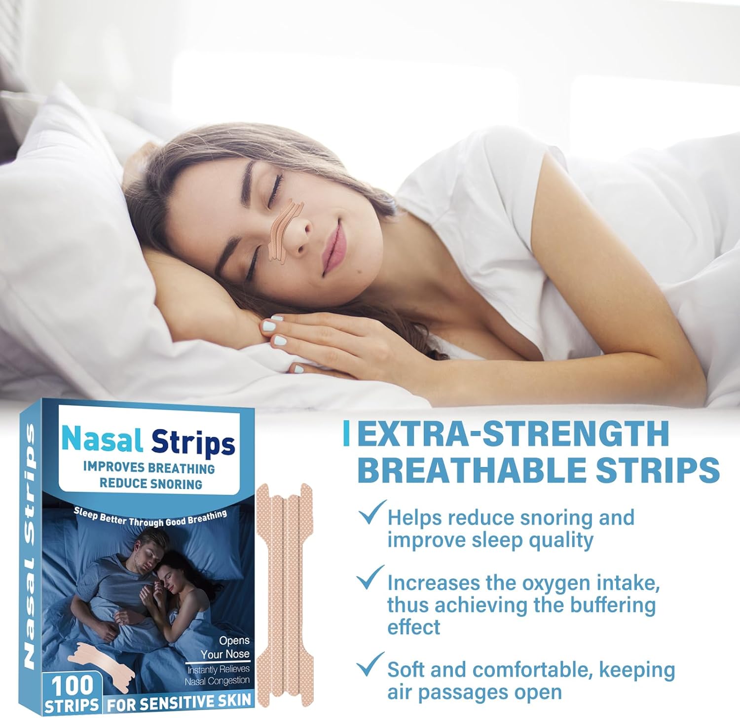 Comfortable breathing is an essential part of a solid night's sleep. Our nasal breathing strips are genuinely a great option for reducing snoring relief and nasal congestion relief.