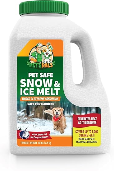 PET'S PALS - Pet Safe Snow & Ice Melt | Calcium Chloride | Works Under -25 «�F | Safe for Concrete Driveway and Roof | Better Than Rock Salt | Safe for Kids and Pets (10 Lbs)