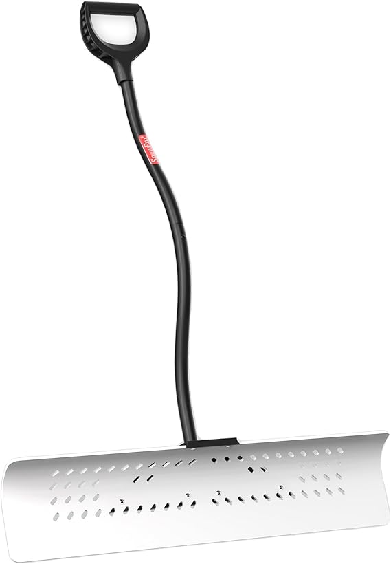36" Snow Pusher, Snow Shovel for Driveway Snow Removal, Back Saver Snow Plow for Doorway, Sidewalk, Deck. Extra Wide Blade with Ergo Handle, Great for Both Residential and Commercial Application