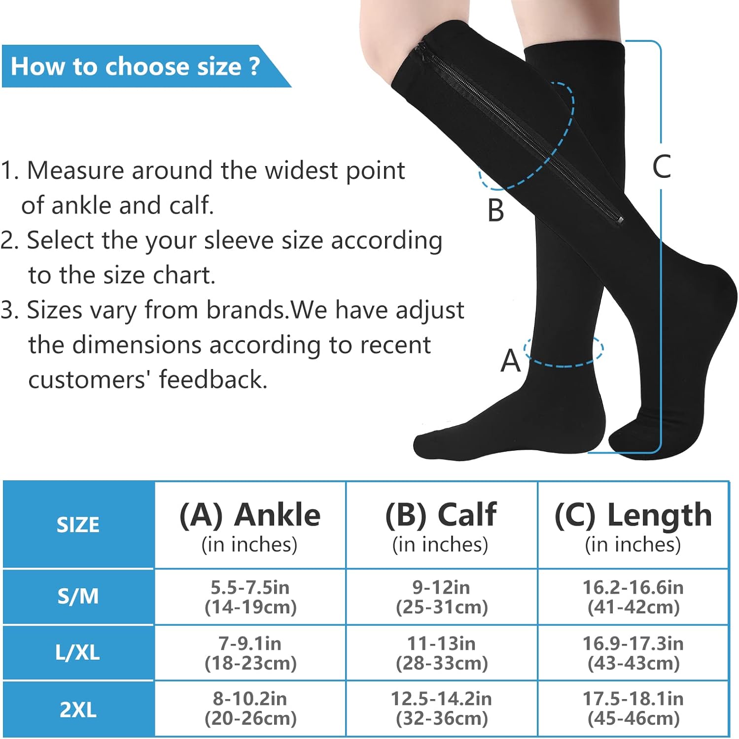 • ✨ BEST WISHES AND ALWAYS BLESSING - our company hope zipper compression socks will always be by your side. Any dissatisfaction is guaranteed a 100% refund, please rest assured to order. Your satisfaction and good health are our top priorities. We believe you will choose it! If you have any questions, please contact our customer