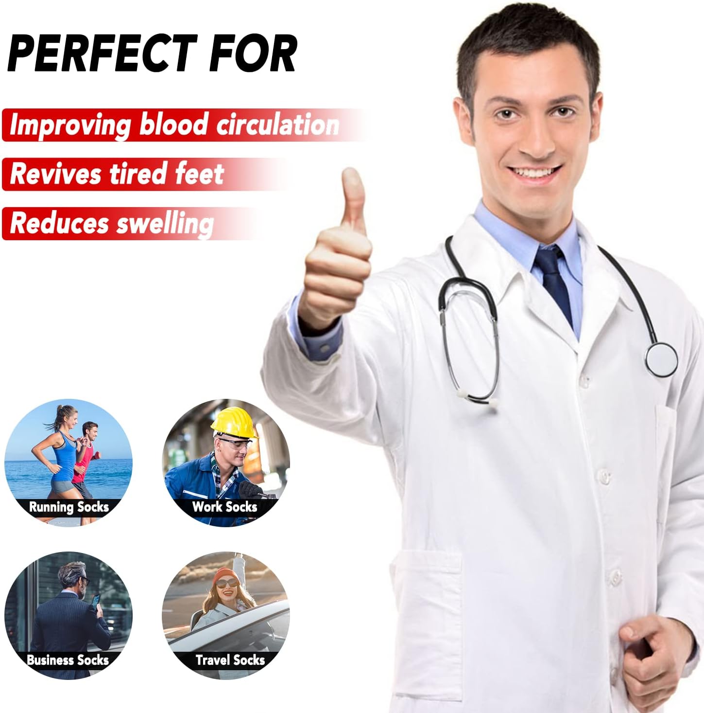 • 【HIGH PERFORMANCE + YOU CAN WEAR IT EVERYDAY】- Compression socks have been proven to enhance performance, help speed recovery, and provide relief from injury and inflammation. They provide optimal articulation and muscle support. A veritable necessity for anyone working long-hours standing on their feet, or those heavily invested in athletics and a fitness lifestyle. It is great gift to joggers, athletes, workout fanatics, office workers, parents or grandparents, runners, nurses and doctors.