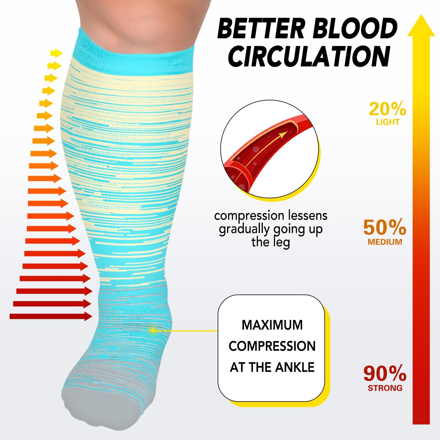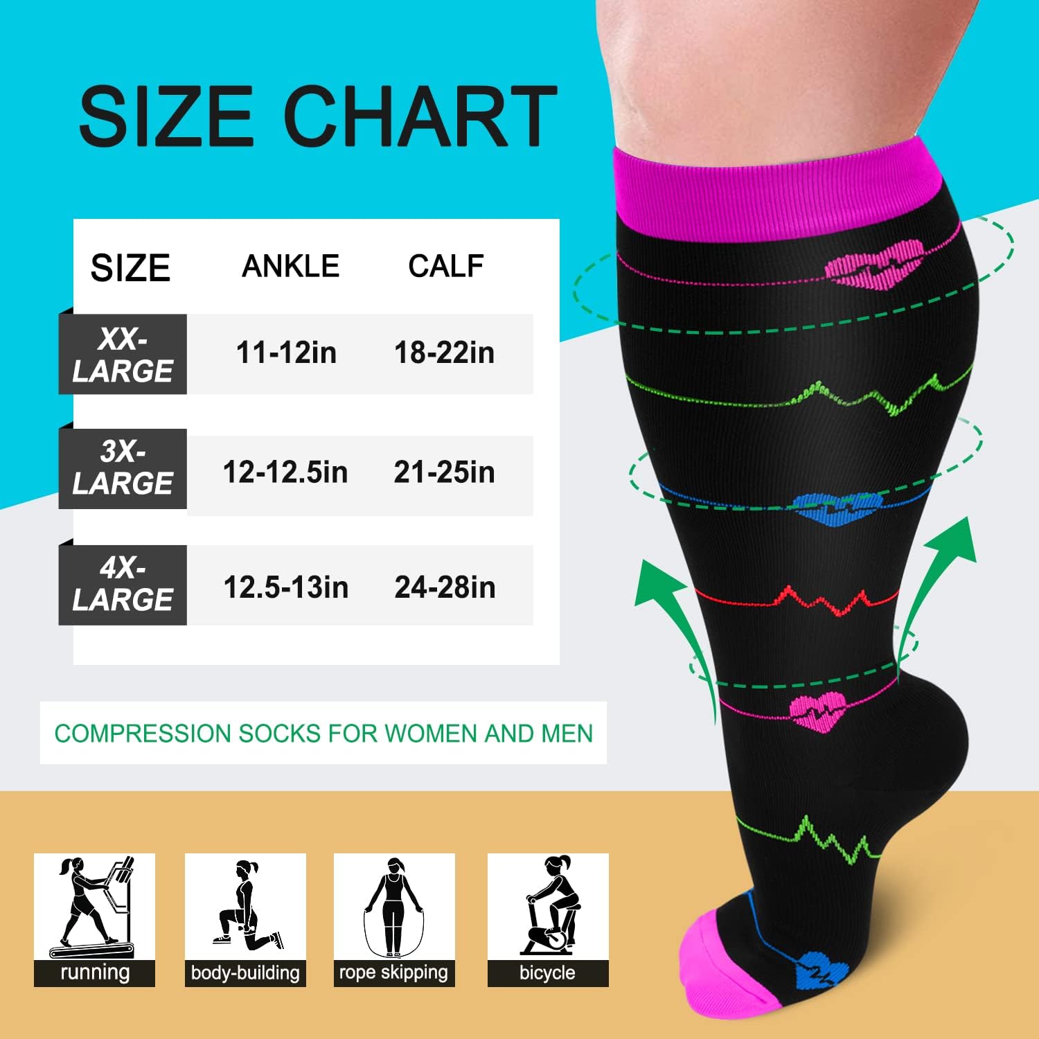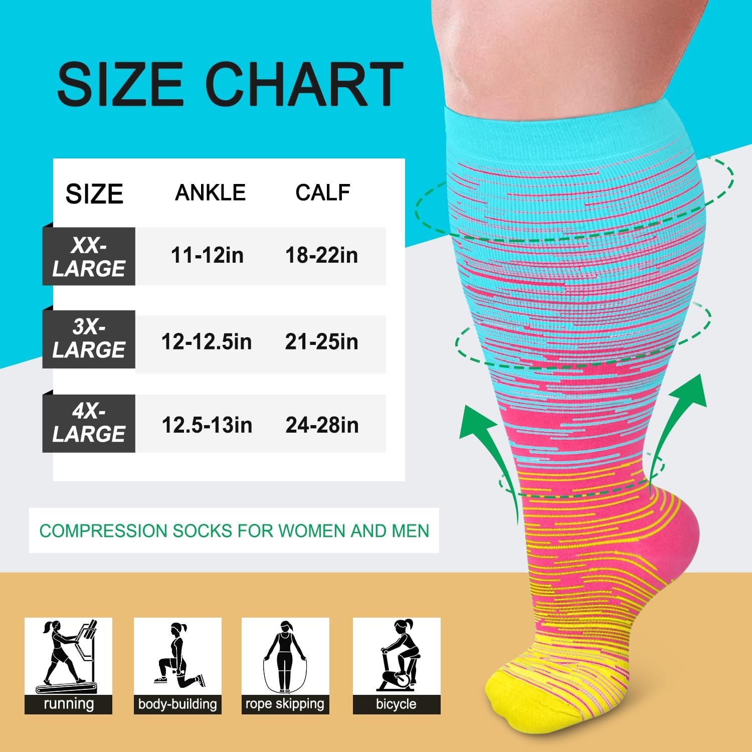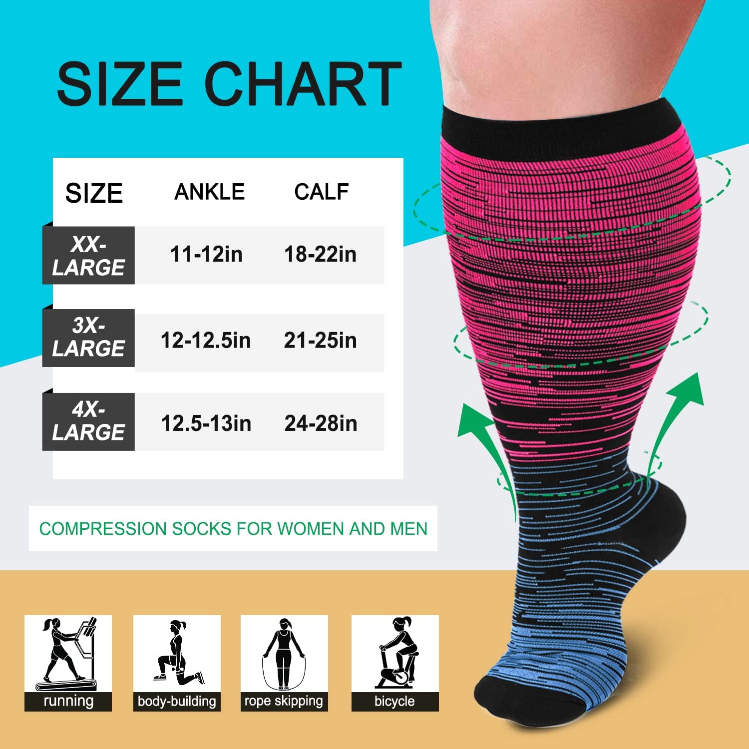 FuelMeFoot Plus Size Compression Socks for Women Men Wide Calf 20-30 mmHg Extra Large for Circulation Support Recovery
