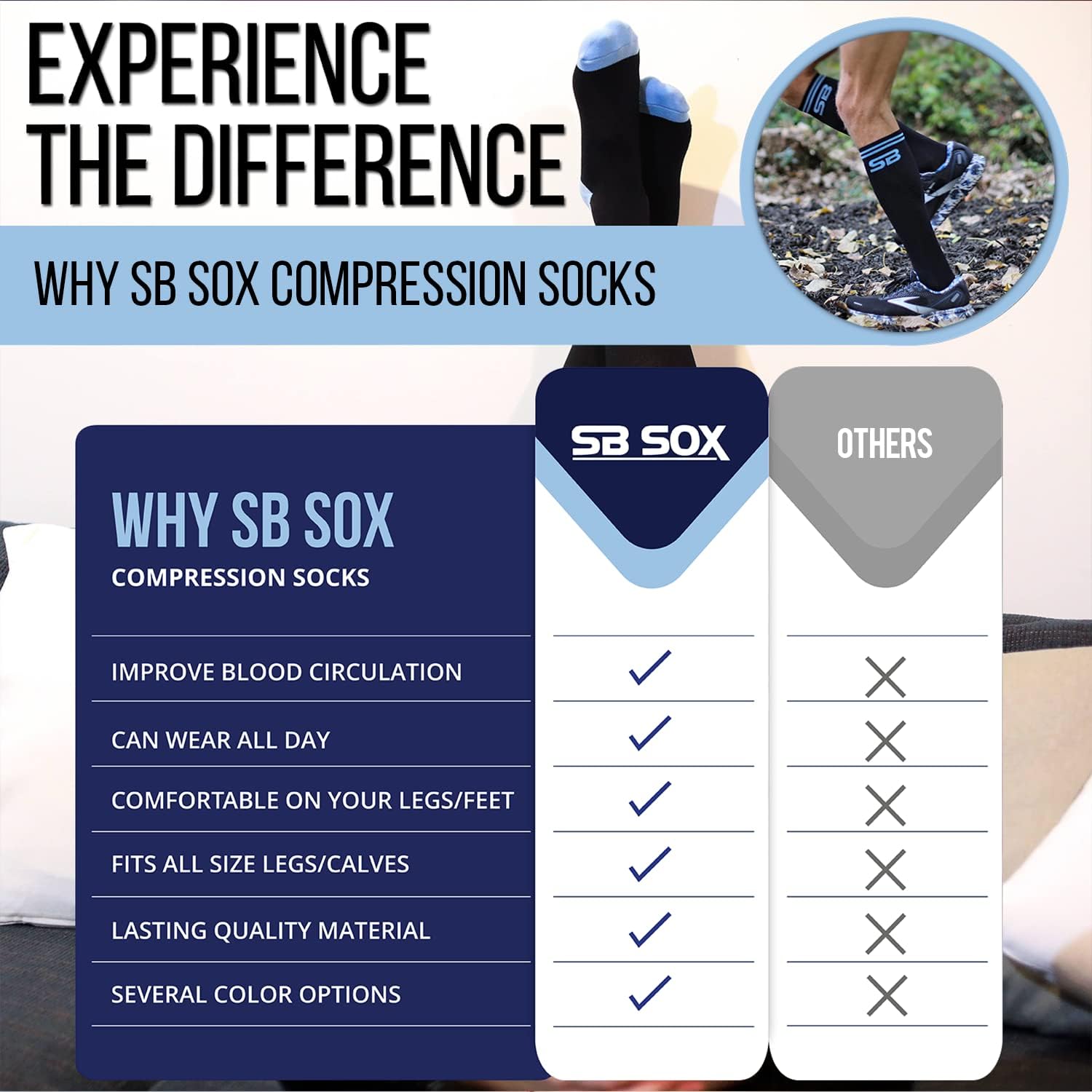 SB SOX Compression Socks (20-30mmHg) for Men & Women – Best Compression Socks for All Day Wear, Better Blood Flow, Swelling!