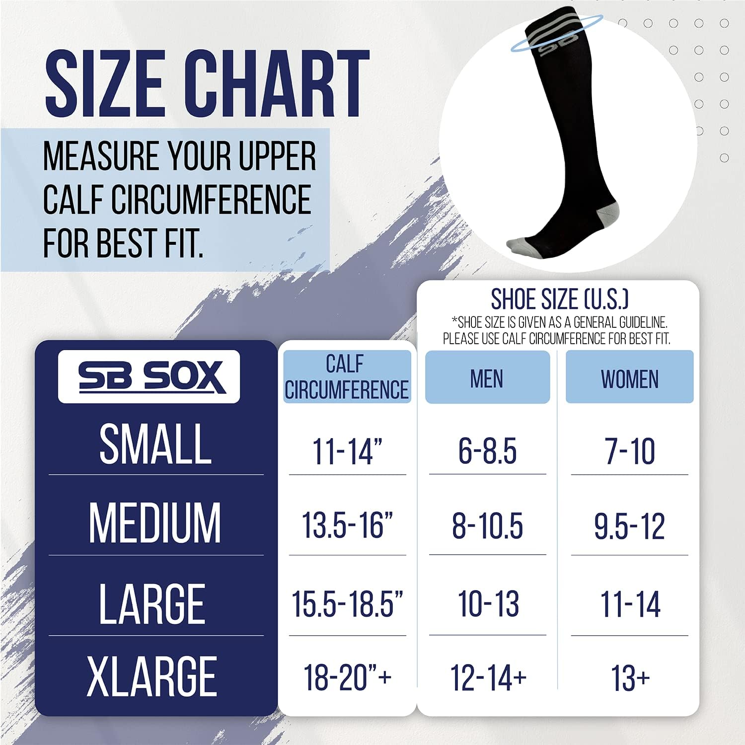 • ✅ Perfect Fit: Refer to our size chart (4th product image) to determine the best size for you. We offer four sizes so that our socks can perfectly fit your feet/calves. We do recommend measuring your calf circumference.