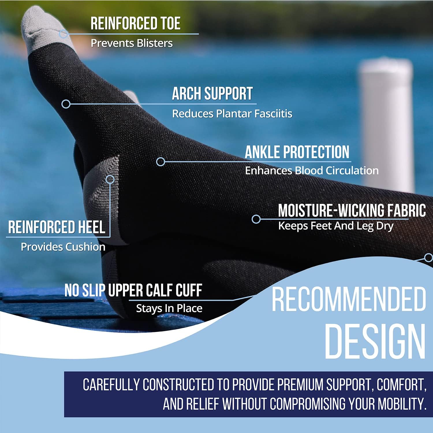• ✅ Decrease Swelling and Fatigue: Our graduated compression socks provide the ideal compression to improve blood flow to relieve swelling and fatigue in your feet and legs. Great for any activity!