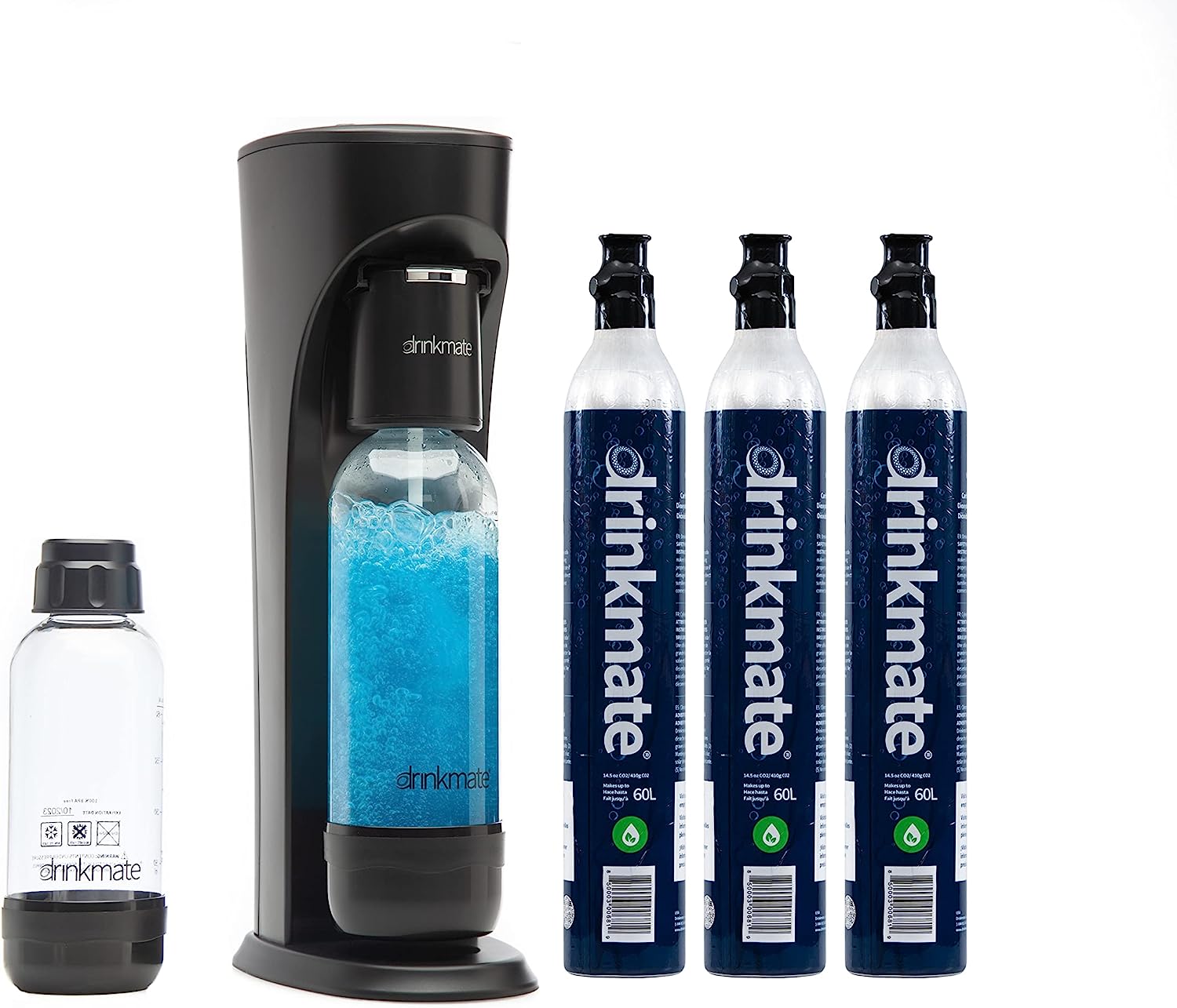 Drinkmate OmniFizz Sparkling Water and Soda Maker, Carbonates Any Drink, ULTIMATE BUNDLE With CO2 and BPA Free Bottles (Matte Black)