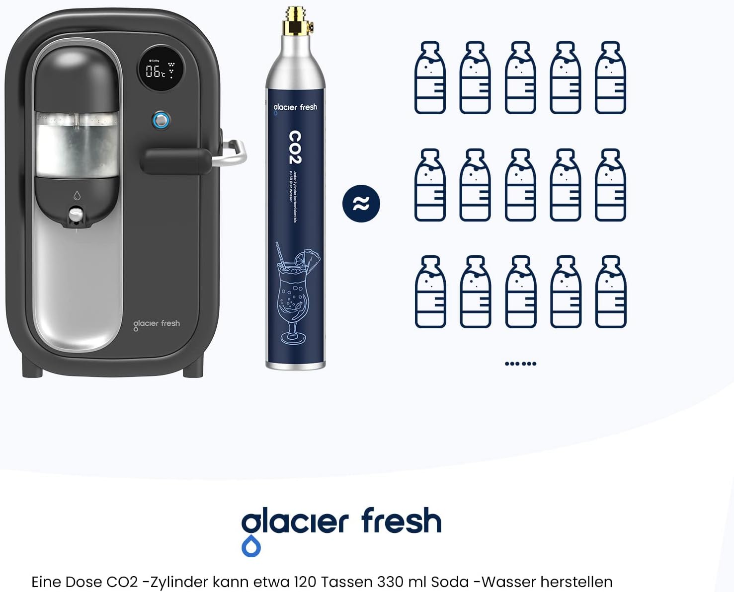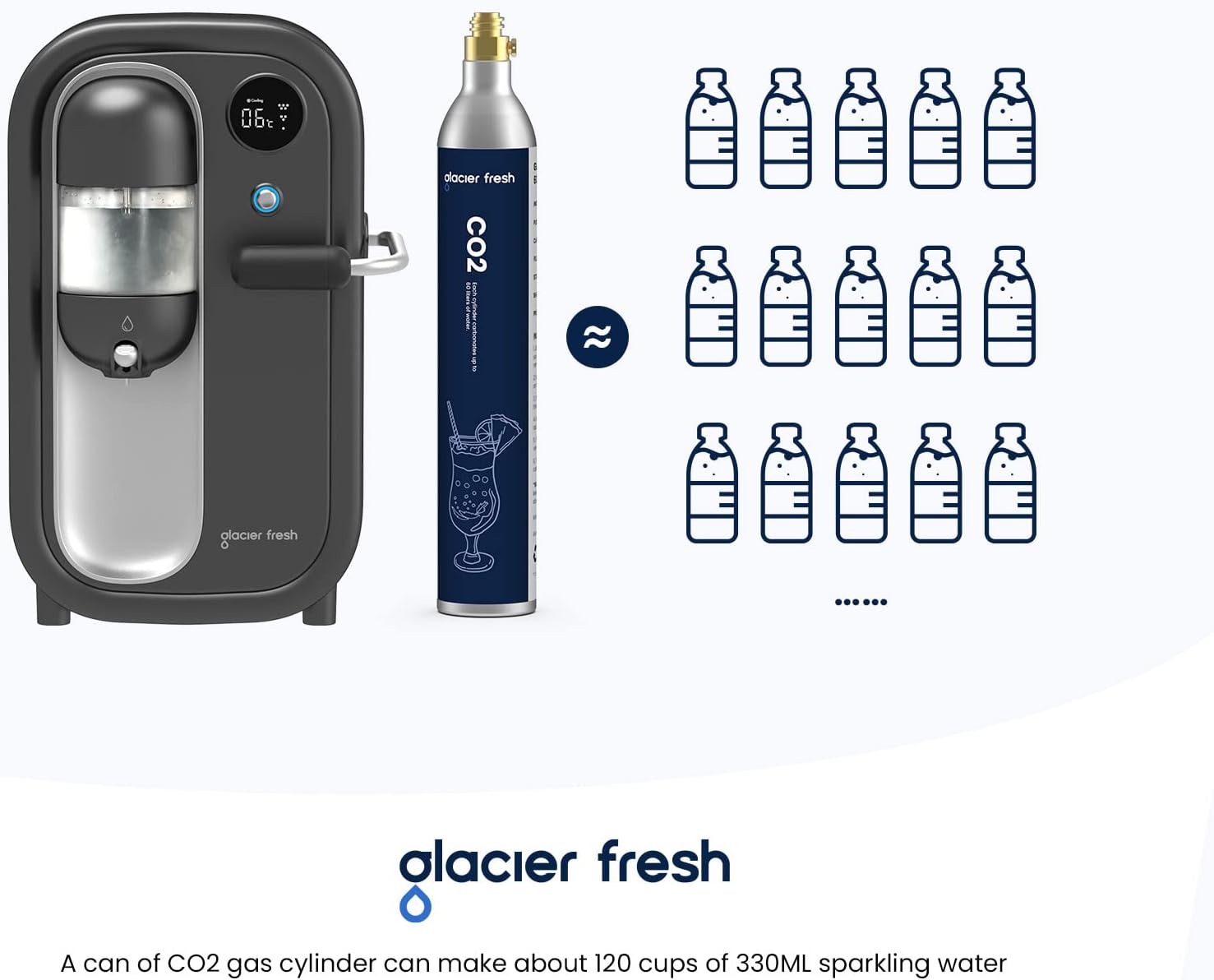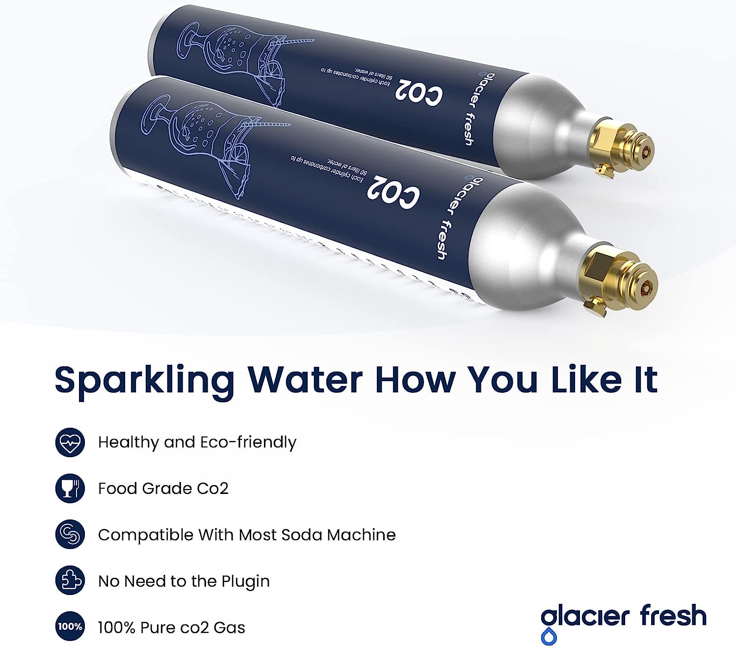 • Electric sparkling water machine comes with a 300ml carbonating bottles, Bottle not required, directly pour to your cup, one-button water storage function is easy to operate, Ergonomic one hand operation,Make fresh sparkling water at the push of a button. 𝑻𝒓𝒚 𝒕𝒐 𝒄𝒉𝒐𝒐𝒔𝒆 𝑮𝑳𝑨𝑪𝑰𝑬𝑹 𝑭𝑹𝑬𝑺𝑯 𝑪𝑶2 𝑪𝒂𝒓𝒃𝒐𝒏𝒂𝒕𝒐𝒓