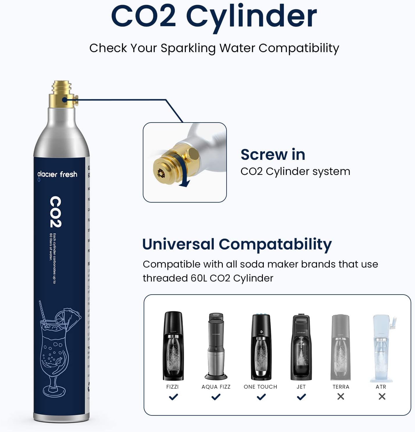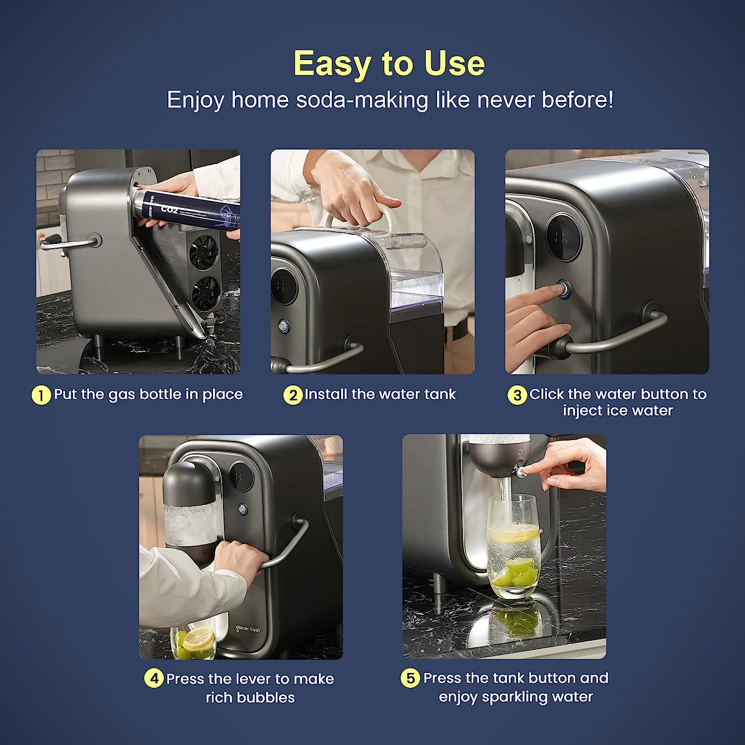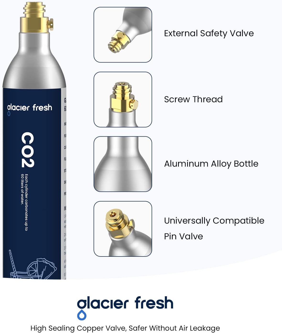 • Electric sparkling water machine comes with a 300ml carbonating bottles, Bottle not required, directly pour to your cup, one-button water storage function is easy to operate, Ergonomic one hand operation,Make fresh sparkling water at the push of a button. 𝑻𝒓𝒚 𝒕𝒐 𝒄𝒉𝒐𝒐𝒔𝒆 𝑮𝑳𝑨𝑪𝑰𝑬𝑹 𝑭𝑹𝑬𝑺𝑯 𝑪𝑶2 𝑪𝒂𝒓𝒃𝒐𝒏𝒂𝒕𝒐𝒓