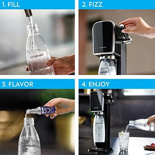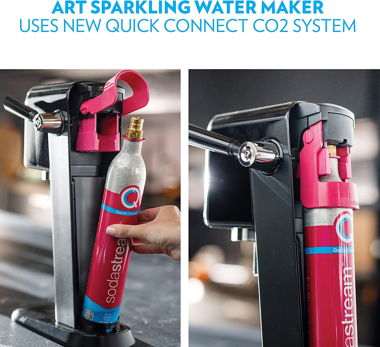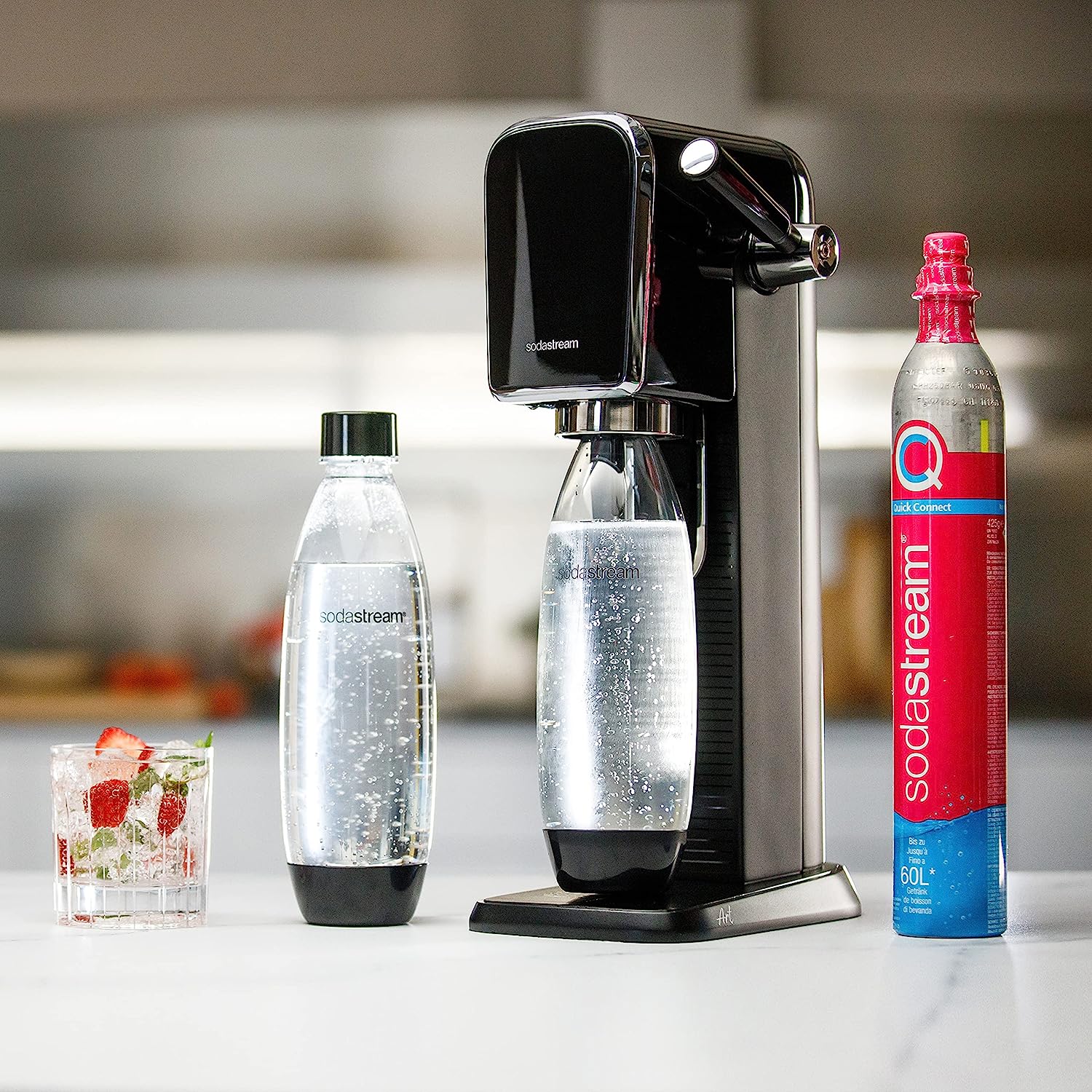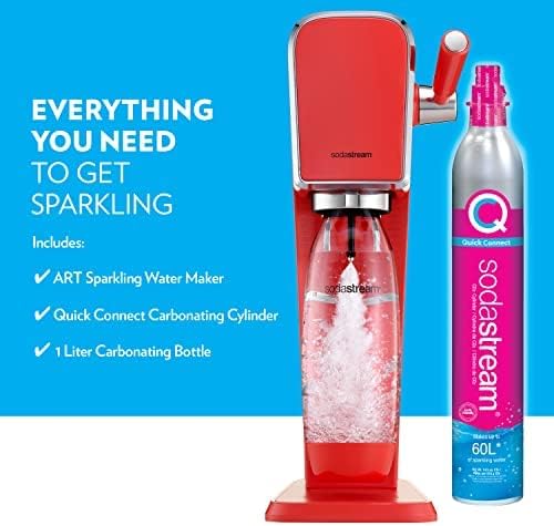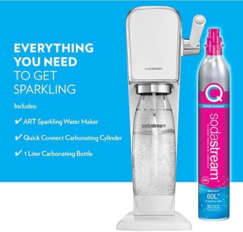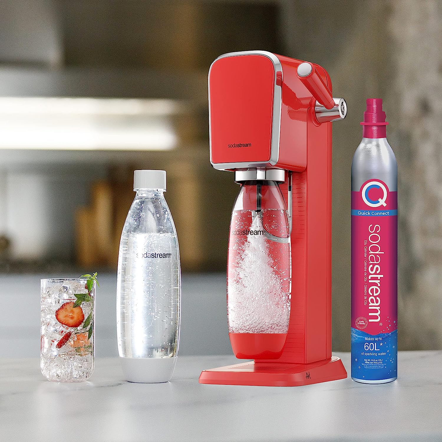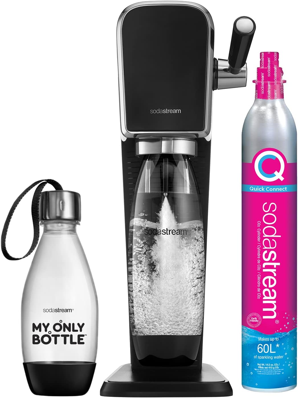 The NEW SodaStream Art Sparkling Water Maker celebrates the art of making your own fresh sparkling beverages at home. With a push of the lever, turn flat water into fresh sparkling water and customize it to your liking. The Art features a retro looking design along with a unique carbonating lever. Manual carbonation, no batteries required. One SodaStream reusable carbonating bottle can save thousands of single use plastic bottles. Always fizz water before adding any flavor.