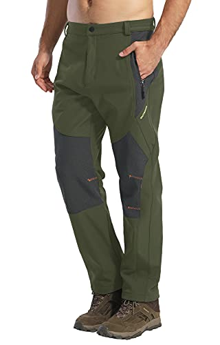 Details: TACVASEN Men's Hiking Pants Water Resistant Reinforced Knees Fleece Lined Ski Pants with 4 Zipper Pockets Material: Polyester, Fleece lining Color: Black, Green, Navy, Grey Size: 30, 32, 34, 36, 38, 40 Casual/Outdoor ATTENTION The color of the item may vary slightly due to the different shooting options, computer screens, or other factors OCCASION Suitable for daily wear and outdoor activities like skiing, snowboard, hunting, camping, climbing, hiking, skiing, snowboard, cycling, fishing travelling, mountaineering, biking, adventure travel, training and so on.