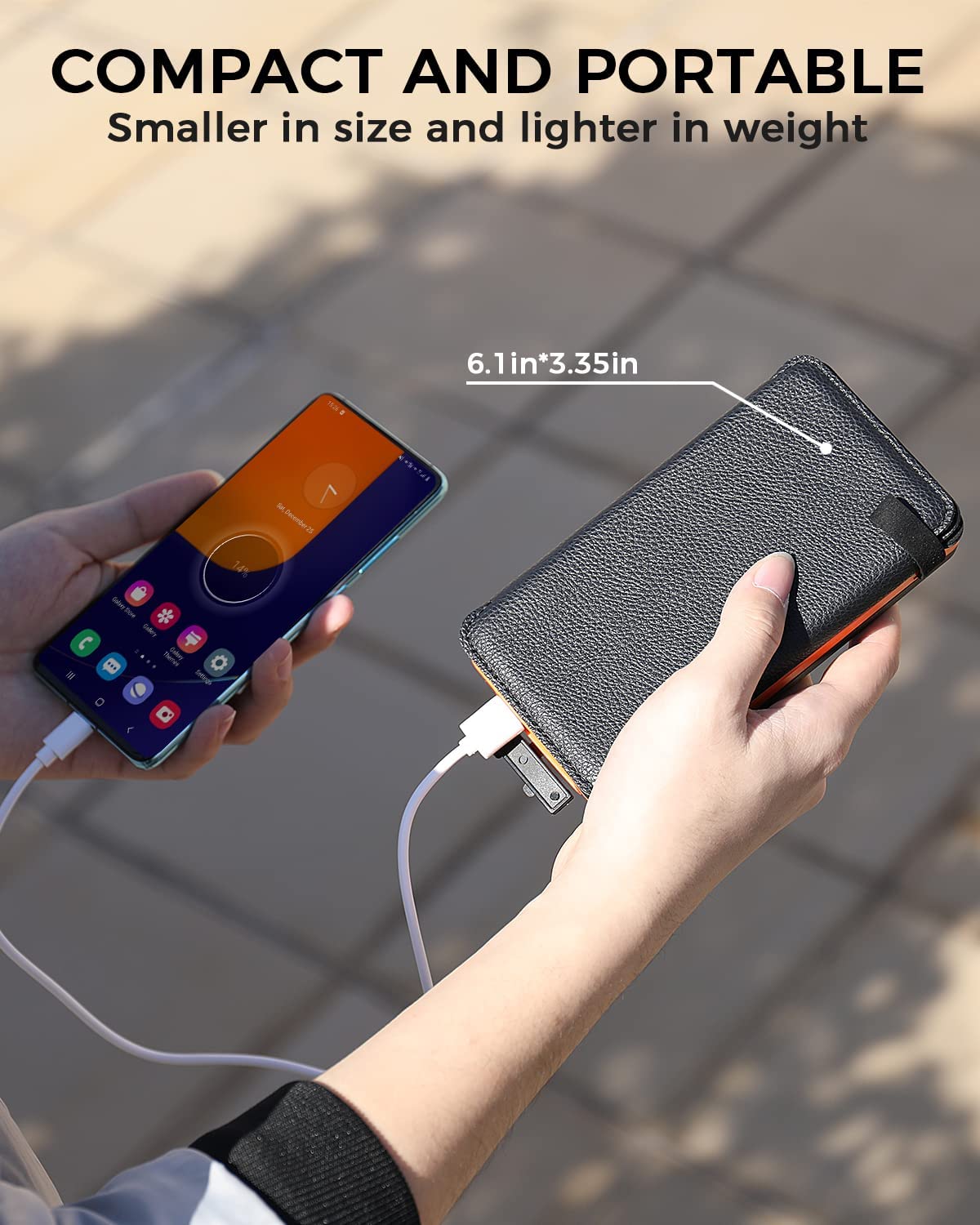 • 26800mAh Powerful Capacity: Comes with 26800mAh large capacity battery, the solar phone charger provides an iPhone11 -8 charges, a Samsung S20 -6 charges and a tablet -3 charges on a single recharge. It meets the charging needs of daily use, outdoor travelling, business activities or other emergency use.