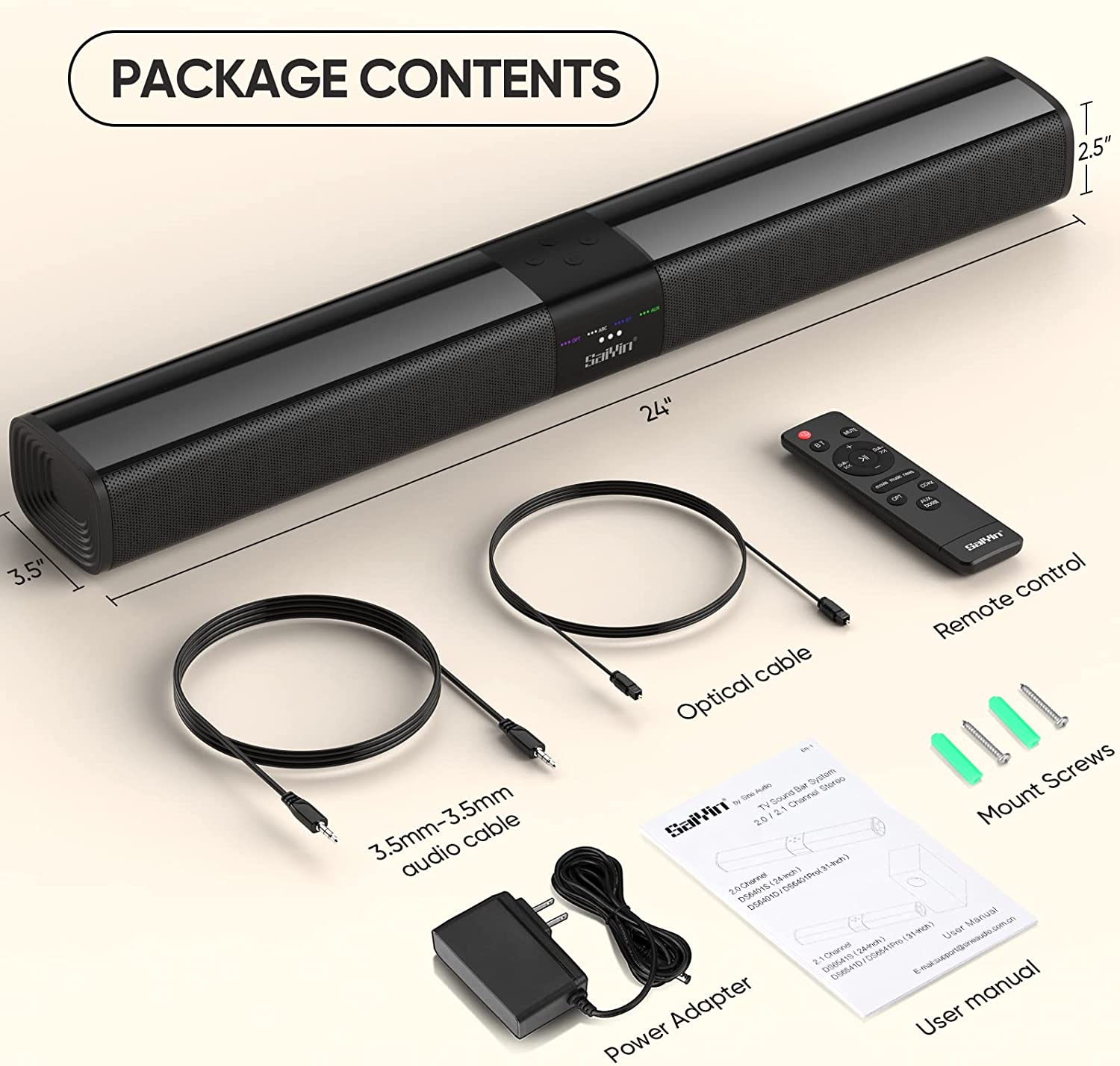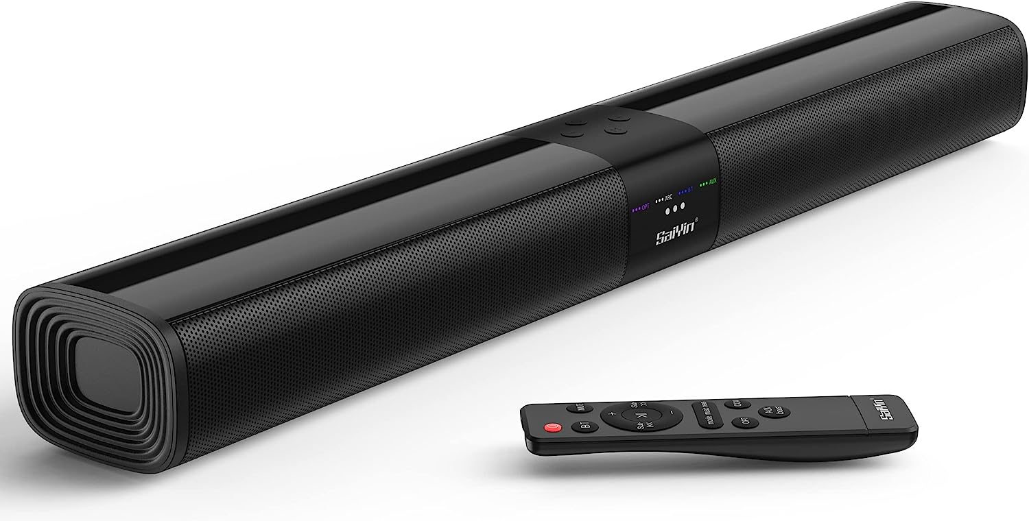 Saiyin Sound Bars for TV, 24 Inches Sound Bar with HDMI(ARC), Optical, AUX and Bluetooth Inputs, Soundbar for TV and Surround Sound System