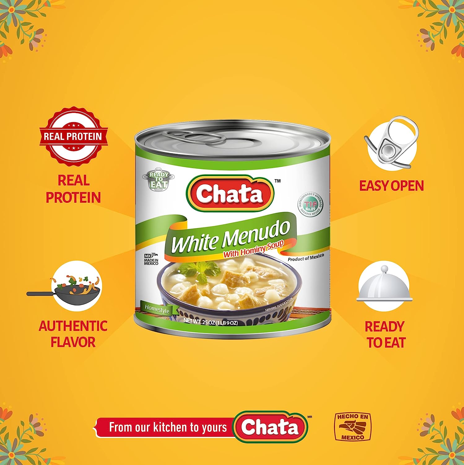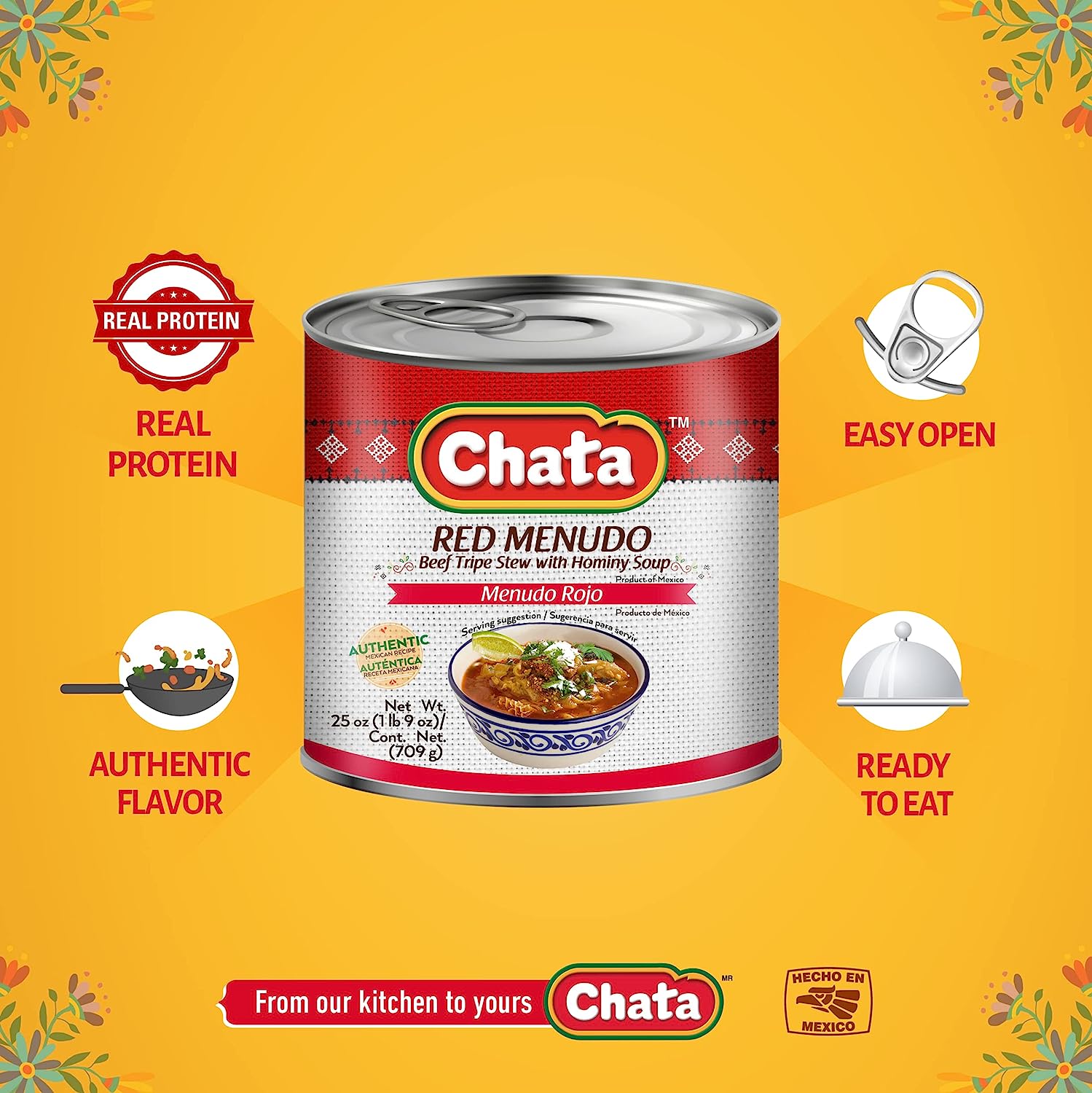 Chata Red Menudo with Hominy Can | Ground Corn + Beef Tripe Stew | Ready-to-Eat | 25 Ounce (Pack of 2)
