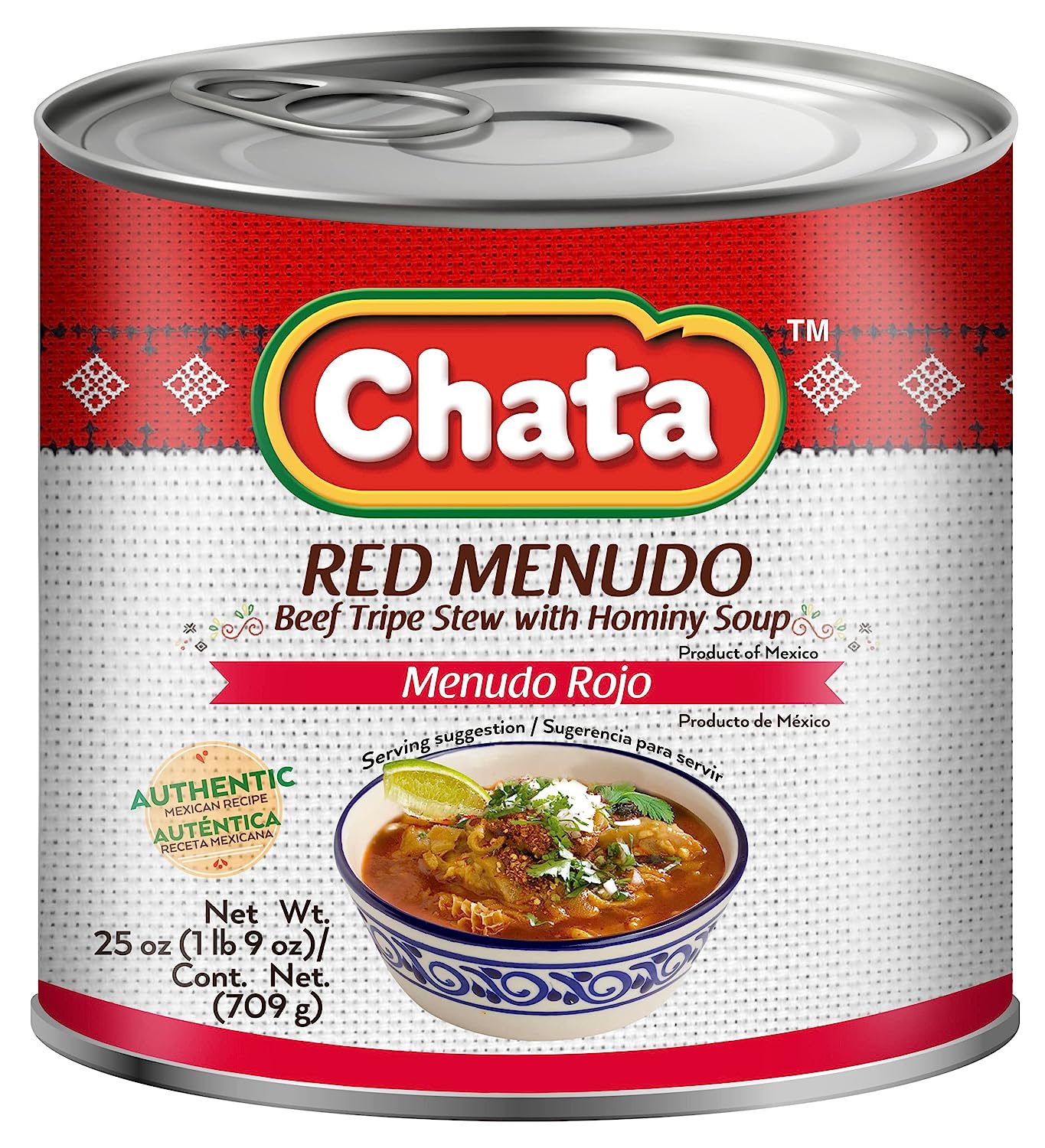Menudo Rojo is a spicy traditional dish that is well known in Mexico, known to be eaten during the holiday season or special occasions. The process of making this meal from scratch is time and labor intensive as it takes a few hours to cook the meat just right so that it is savory and tender. Chata has reduced the hours of preparation into just minutes, simply open, warm, and enjoy this hearty soup that will have you feeling zestful and warm from the inside out.