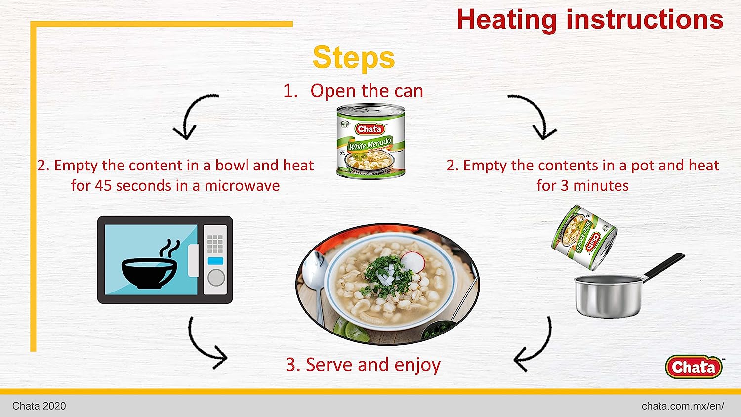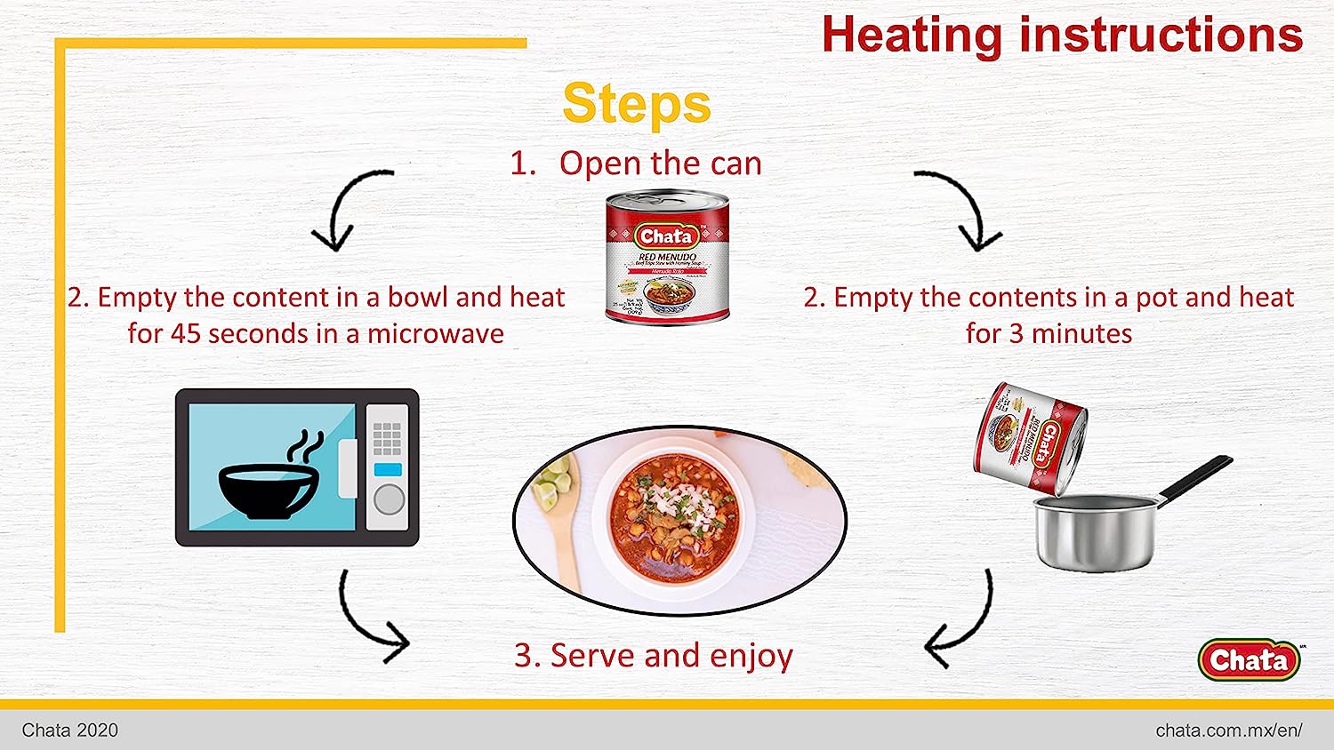• STORAGE: Chata's delicious food products are conveniently packaged, practical to cook, and shelf stable - no refrigeration required! There is no easier way to taste the unique, homemade flavors of authentic Red Menudo seasoned with flavorful chilis and spices
