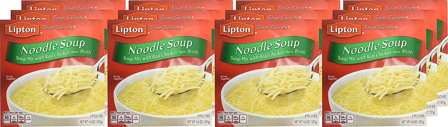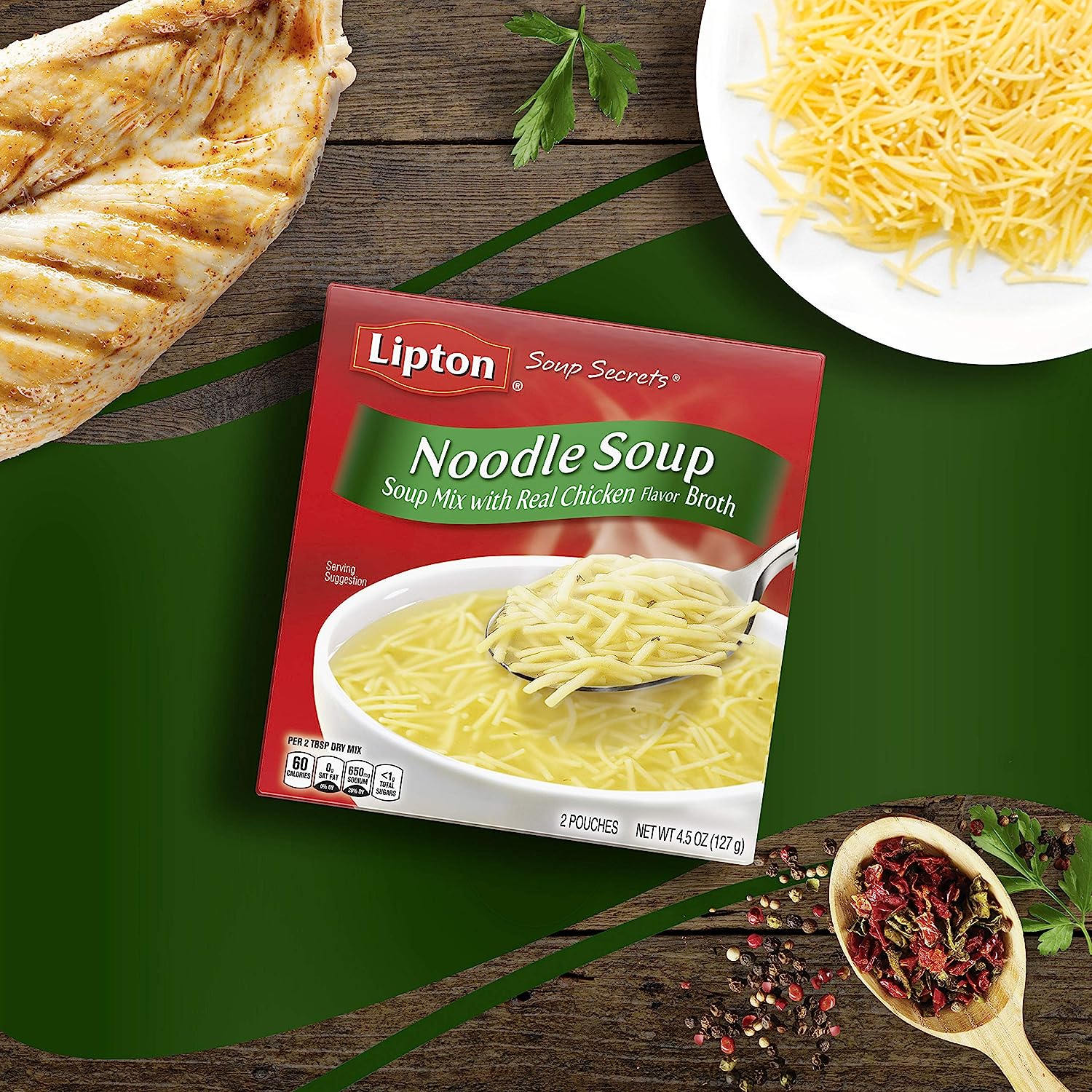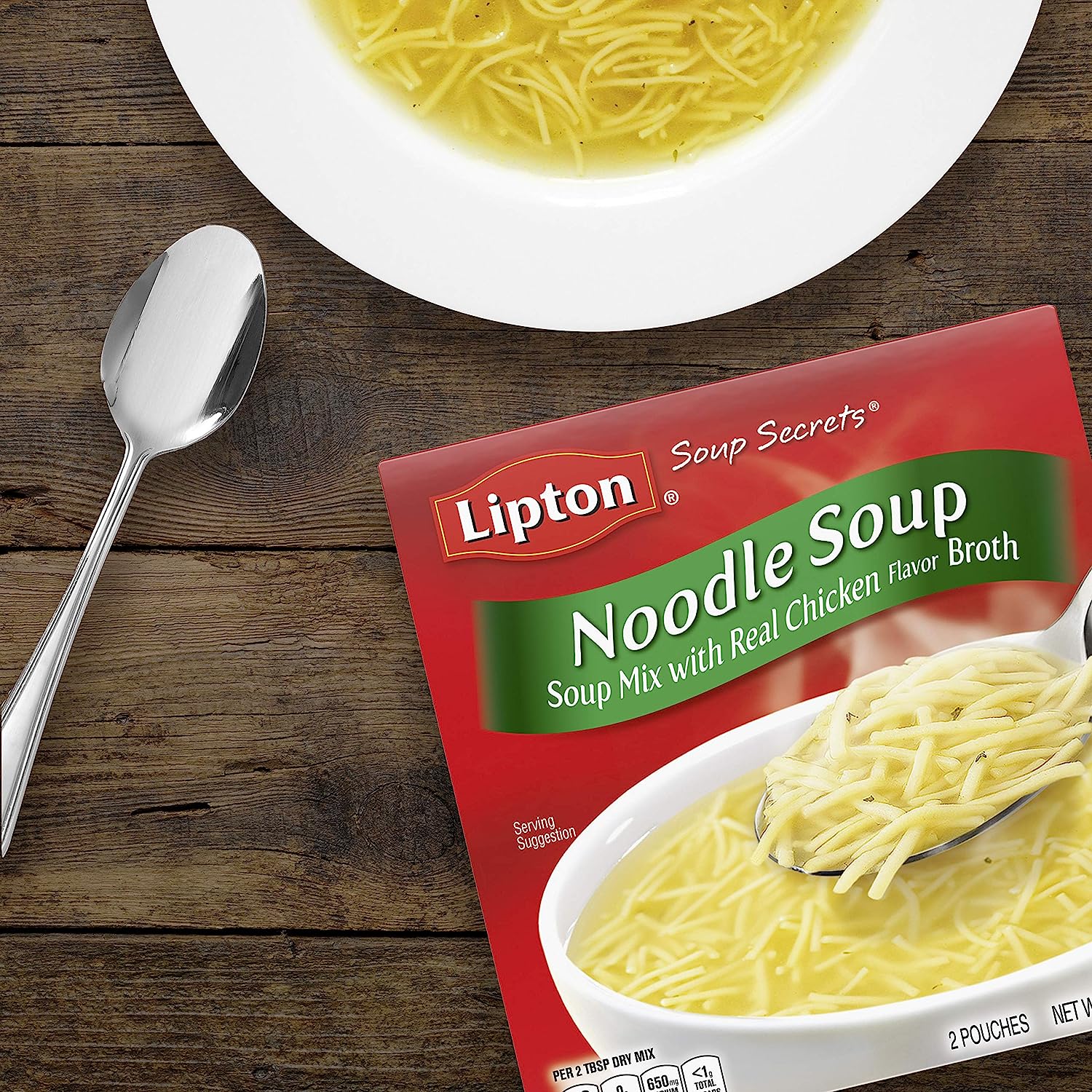 Enjoy soup at any time with Lipton Soup Secrets Soup Mixes. Our satisfying soups are made with real chicken broth and enriched flavorful noodles, and they’re a great way to please the entire family. Each box of Soup Secrets Soup mix makes 6-8 servings. Enjoy it as a satisfying snack any time of day for as few as 70 calories (or less) per one cup serving. Soup Secrets make it easy for you to make hearty, homemade soup for your family. Add one bag of instant soup mix to four cups of water and bring to a boil, cooking until noodles are tender. Add your favorite meats and/or vegetables for a delicious meal made in a faction of the time. For even faster prep, combine one pack of dry soup mix to four cups of water and microwave on high for 10-12 minutes or until noodles are ender. When you’re craving something warm and satisfying for your family, reach for Lipton Soup Secrets, and enjoy the soul-restoring combination of flavorful broth and curly, swirly noodles. Soup Secrets are available in 4 delicious varieties: classic Noodle Soup, Extra Noodle Soup, Ring (O) Noodle Soup, and Chicken Noodle Soup with Diced White Chicken Meat. Bring the entire family together with Lipton Soups! Warm, soothing, satisfying, and delicious, Lipton Soups have been there for you and your family since 1940.