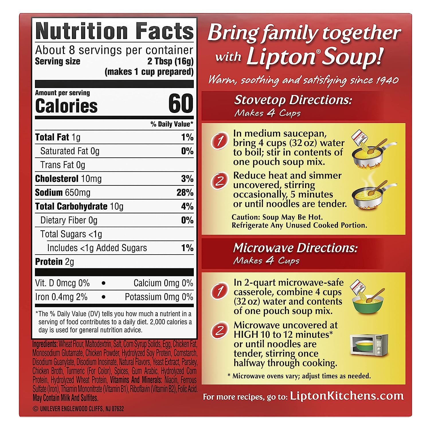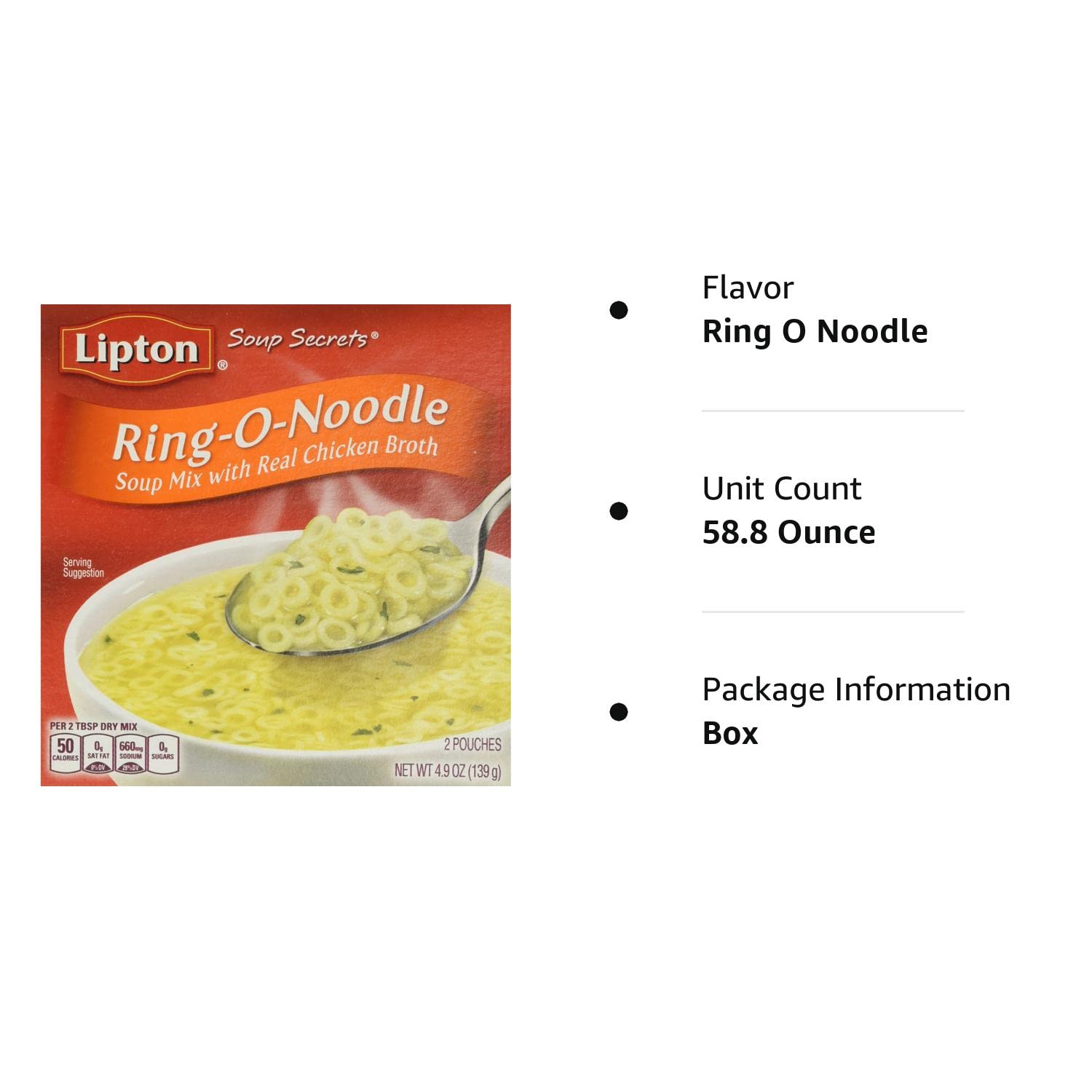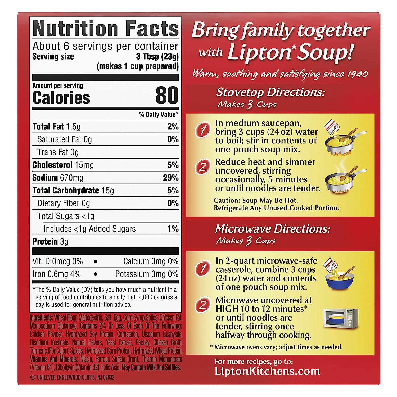 Enjoy soup at any time with Lipton Soup Secrets Soup Mixes. Our satisfying soups are made with real chicken broth and enriched flavorful noodles, and they’re a great way to please the entire family. Each box of Soup Secrets Soup mix makes 6-8 servings. Enjoy it as a satisfying snack any time of day for as few as 70 calories (or less) per one cup serving. Soup Secrets make it easy for you to make hearty, homemade soup for your family. Add one bag of instant soup mix to four cups of water and bring to a boil, cooking until noodles are tender. Add your favorite meats and/or vegetables for a delicious meal made in a faction of the time. For even faster prep, combine one pack of dry soup mix to four cups of water and microwave on high for 10-12 minutes or until noodles are ender. When you’re craving something warm and satisfying for your family, reach for Lipton Soup Secrets, and enjoy the soul-restoring combination of flavorful broth and curly, swirly noodles. Soup Secrets are available in 4 delicious varieties: classic Noodle Soup, Extra Noodle Soup, Ring (O) Noodle Soup, and Chicken Noodle Soup with Diced White Chicken Meat. Bring the entire family together with Lipton Soups! Warm, soothing, satisfying, and delicious, Lipton Soups have been there for you and your family since 1940.