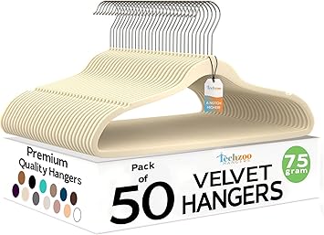 50 Pack New Premium Quality Velvet Hangers Ultra Thin Non Slip Adult Felt Space Saving Hangers for Closet Heavy Duty Coat Pants Jackets Dress Hangers 360‘� Swivel Hook Hold Upto 10 lbs Ivory