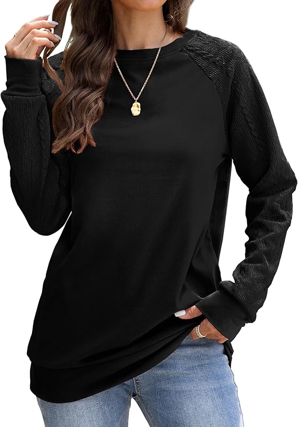 Bluetime Womens Crewneck Sweatshirts Loose Fit Cable Knit Long Sleeve Tunic Top Casual Pullover Sweater Fall Tops Shirts