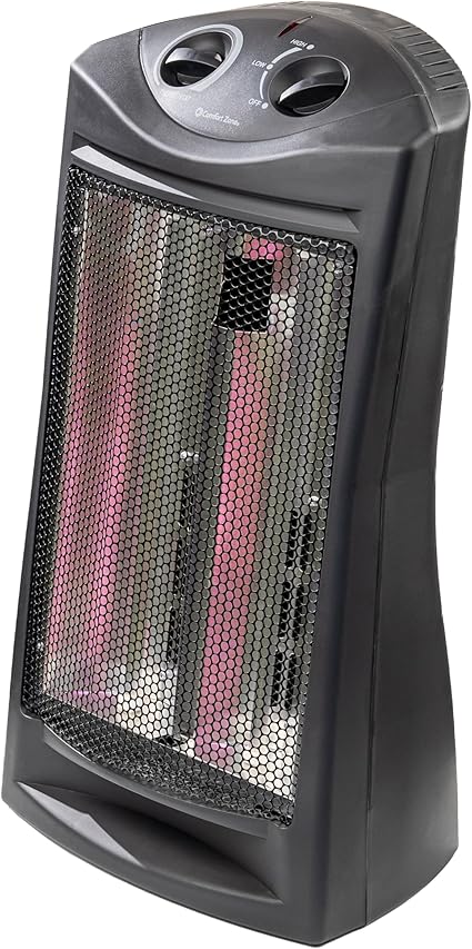Comfort Zone Indoor Tower Space Heater, Adjustable Thermostat, Radiant Heat, Electric, Infrared Quartz, 2 Heat Settings, Overheat Protection, Ideal for Home, Bedroom, & Office, 1, 500W, CZQTV007BK