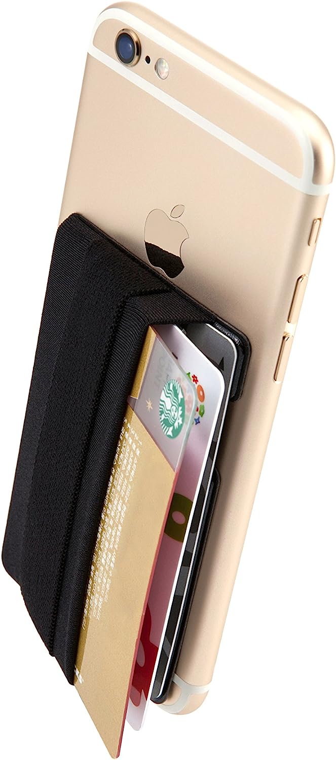Sinjimoru Cell Phone Grip with Card Wallet, Phone Wallet Stick on Card Holder for Back of Phone, Slim Wallet with Elastic Phone Strap. Sinji Pouch Band Black
