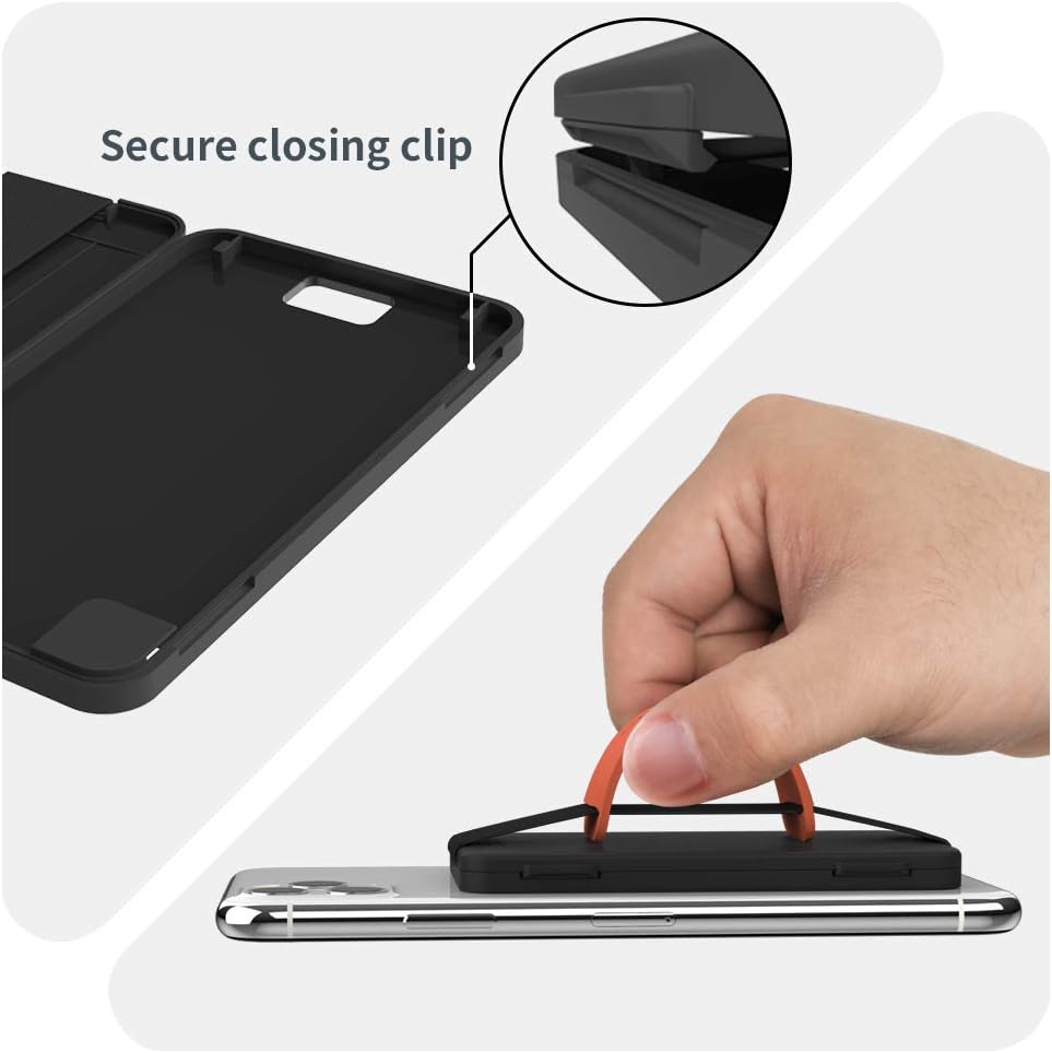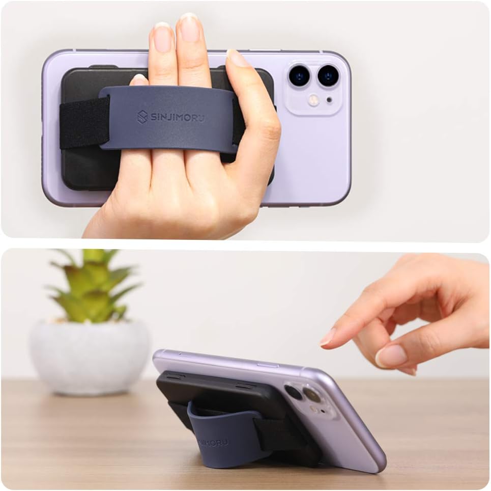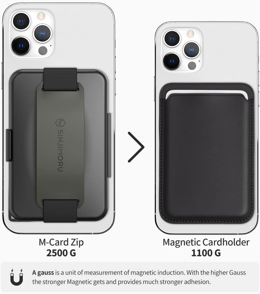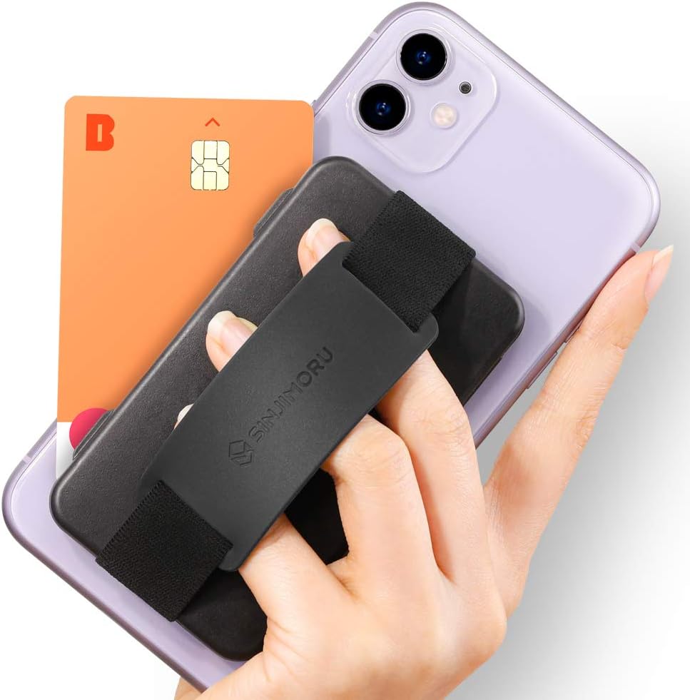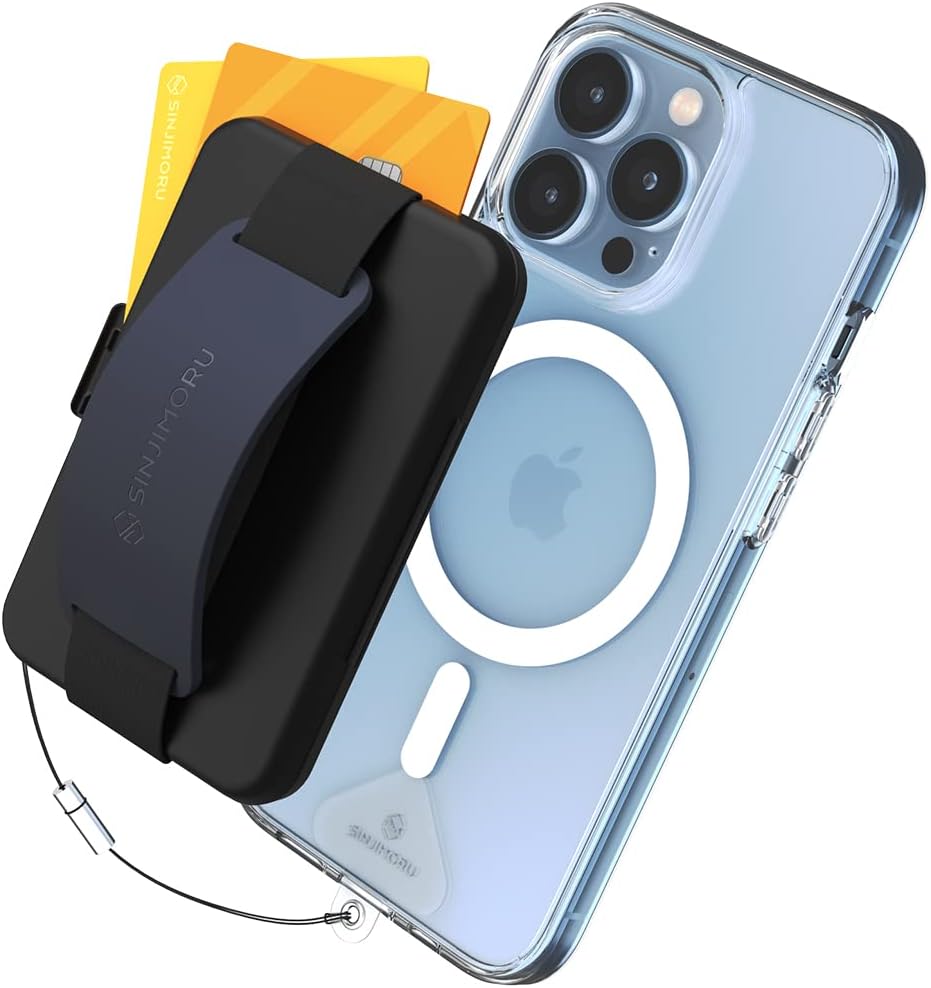 Sinjimoru Secure Magnetic Wallet as Phone Grip Stand for MagSafe Wallet, Cell Phone Wallet Stick On with Phone Kickstand & Phone Grip Holder for iPhone 12/13 and 14 Series. M-Card Zip Black
