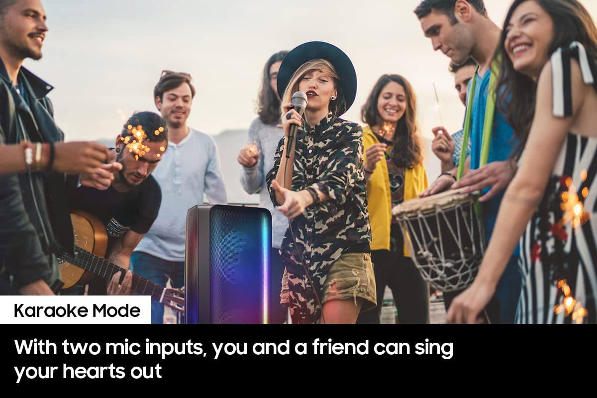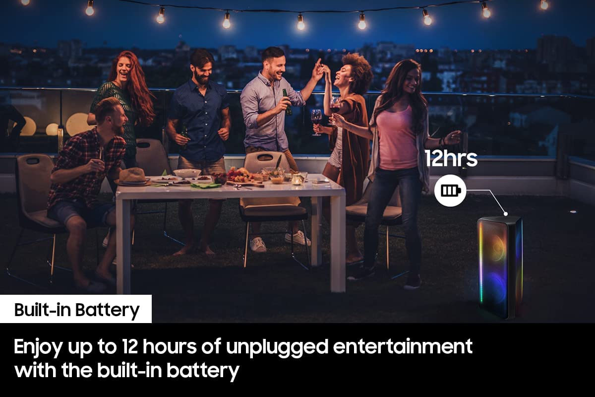 The key to a great party is a great sound system. The ST40B sound tower is an all-in-one solution perfect for pumping the bass and filling rooms with rich sound. With the built in battery, you can take the Sound Tower almost anywhere the party travels to. Connect two smart devices simultaneously and share the sound tower with ease. Plus, download the Sound Tower App to control everything from built-in LED lighting to sound effects and even your EQ setting—right from your Android or iOS device. *Battery life will vary depending on applications loaded on the product and power management setting used by the consumer. **Protection from water conditions based on IPX5 standard. Can resist a sustained, low pressure water jet spray, projected by a nozzle (6.3 mm (0.25 in)) against enclosure from any direction. ***Images are simulated and for illustration purposes only. ****Requires Bluetooth® compatible devices. *****Connect up to 10 wireless or wired.